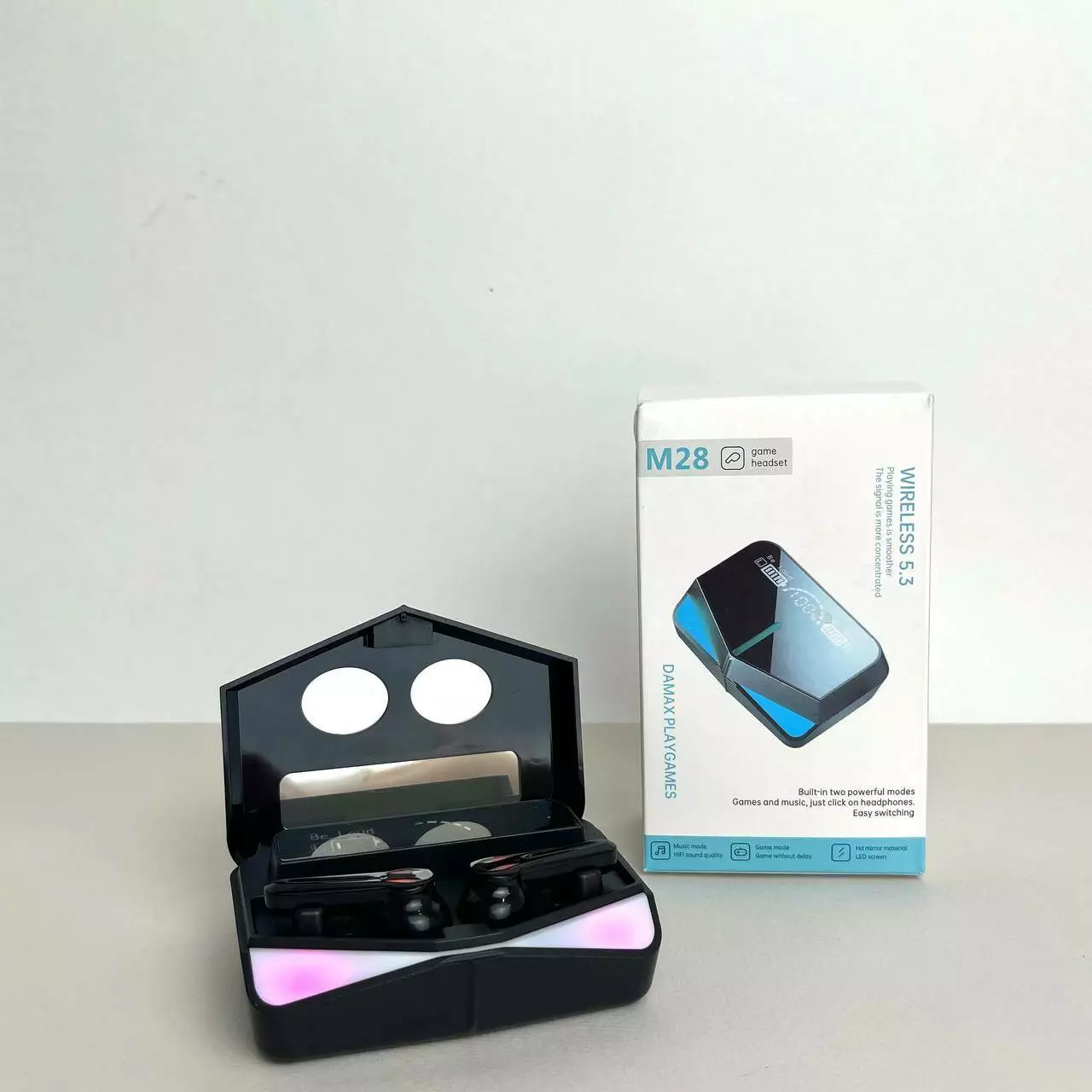 Беспроводные наушники M28 - это современное аудиоустройство, сочетающее высокое качество звука, удобство использования и стильный дизайн. Они оснащены новейшей версией Bluetooth 5.3, что обеспечивает быстрое и стабильное соединение с вашим устройством. Кейс имеет цифровой дисплей, показывающий уровень заряда, а также яркую RGB-подсветку, которая добавляет стильного вида и помогает легко находить наушники в темноте. Футляр с аккумулятором на 2000mAh не только заряжает наушники, но и может использоваться как Power Bank для других устройств через дополнительный USB-разъем. Идеальное решение для тех, кто всегда хочет быть на связи и наслаждаться музыкой в течение длительного времени. Наушники работают без подзарядки 4-6 часов как в режиме прослушивания музыки, так и во время телефонных разговоров. Беспроводные наушники M28 станут отличным выбором для тех, кто ценит качественный звук, функциональность и современный дизайн.