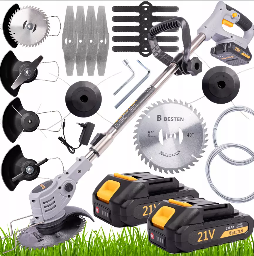 У комплект входять змінні леза, додаткові котушки зі струною, а
