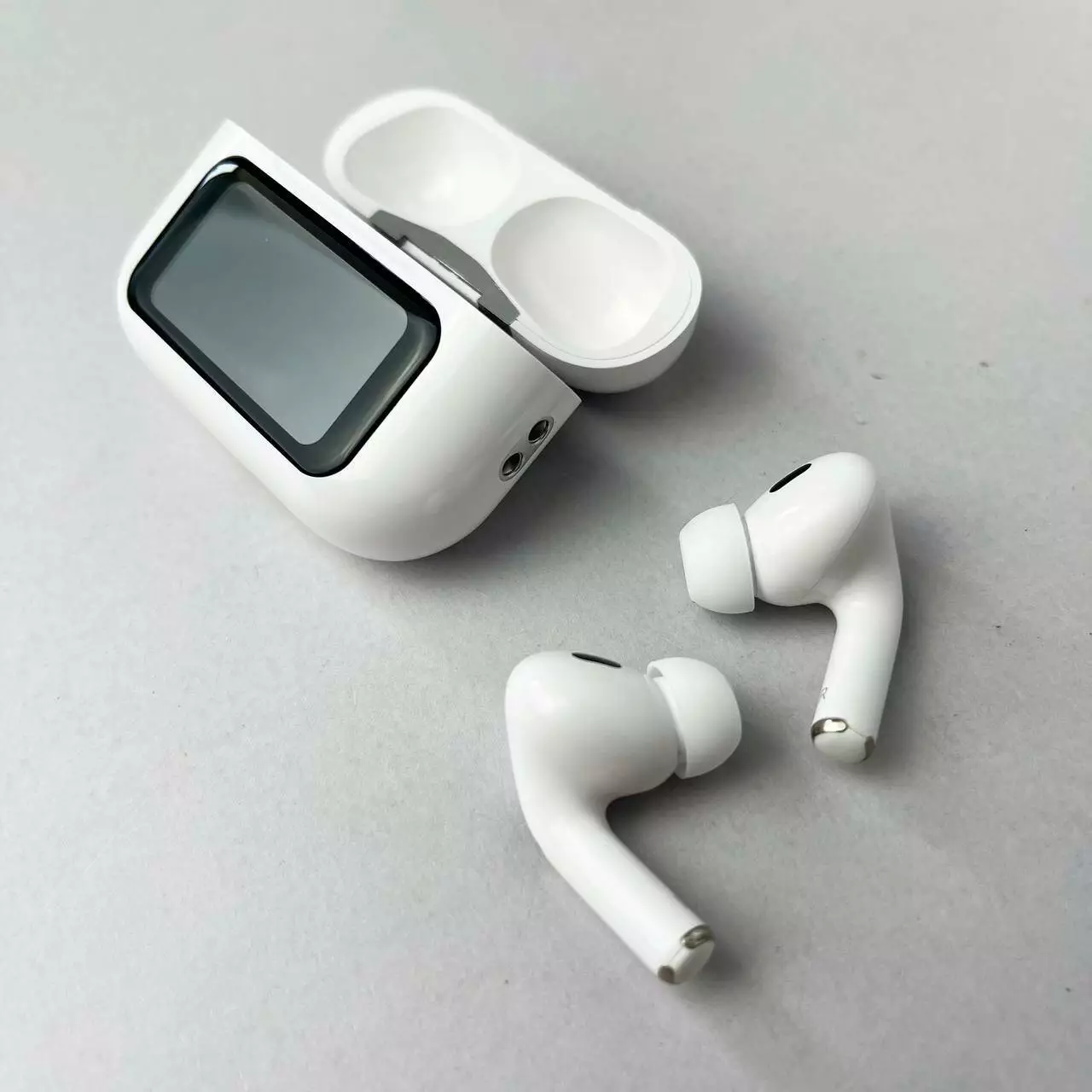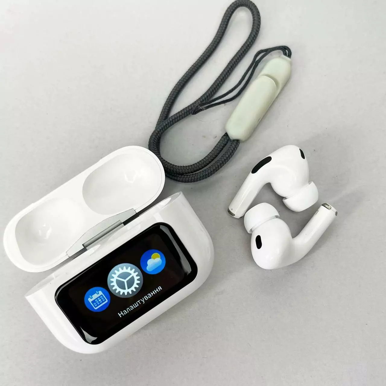 Бездротові навушники Air Pro 2 з дисплеєм - це поєднання передових технологій та інноваційного дизайну, призначене для найвимогливіших користувачів. Ці навушники дають унікальні можливості під час прослуховування музики та спілкування, завдяки інтеграції сучасних функцій, ергономічному дизайну та високій продуктивності. Керування навушниками відбувається за допомогою інтелектуального дисплея розташованого на кейсі навушників. Дисплей дає змогу користувачам обирати параметри керування шумом, «Знайти мої навушники», обирати налаштування еквалайзера та блокувати екран. Дисплей також показує користувачам рівень заряду батареї, час та тому подібне