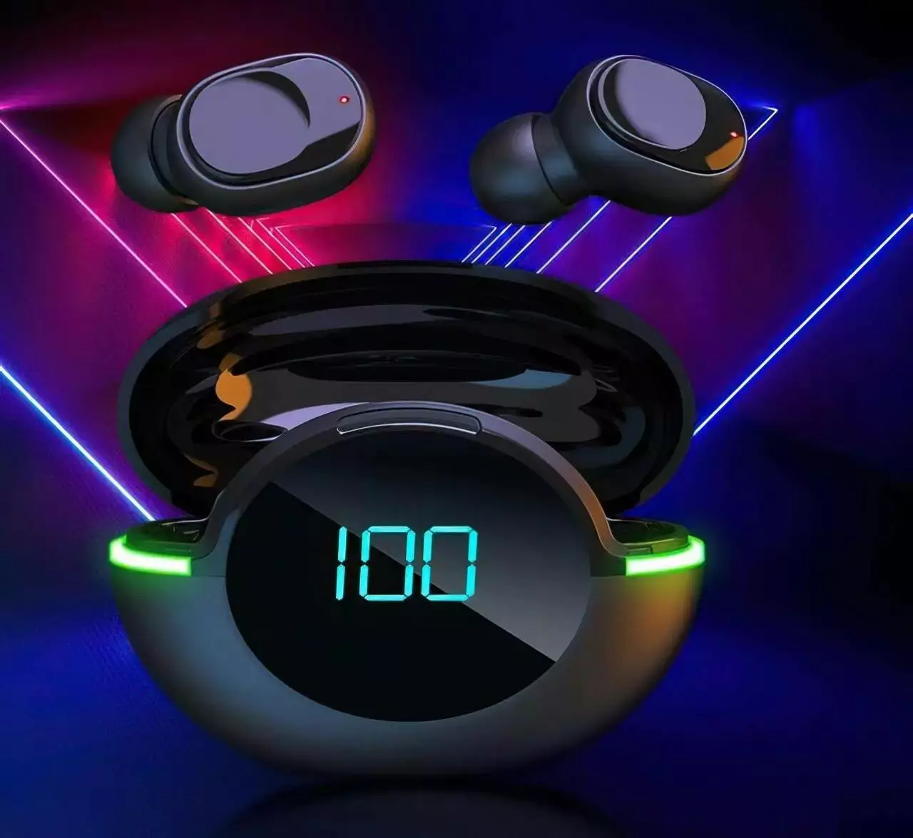 Стильний дизайн кейсу бездротових навушників має РК-дисплей і Led підсвічування.