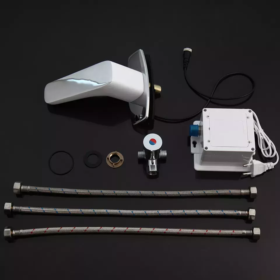 У комплекті шланги для гарячої та холодної води та аксесуари.