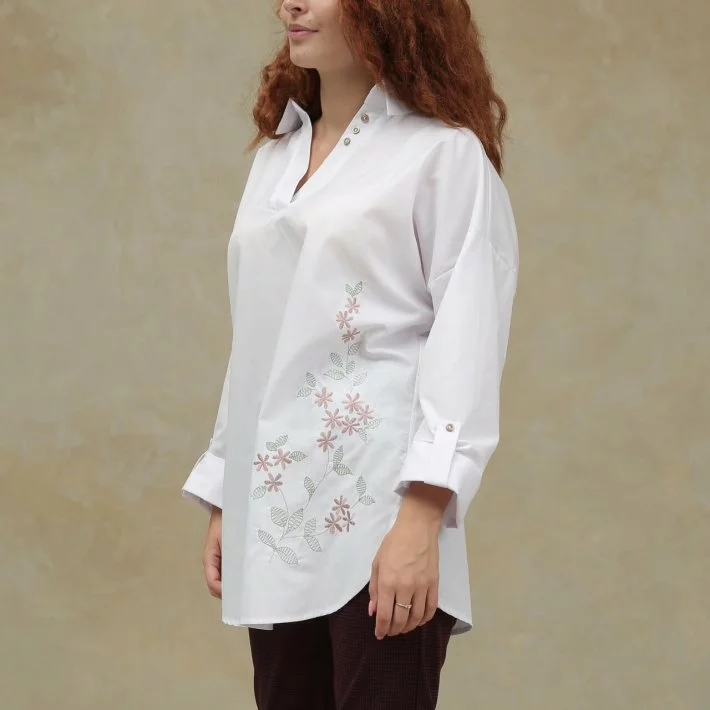 Довгий рукав, плавні лінії низу роблять туніку особливо жіночною.