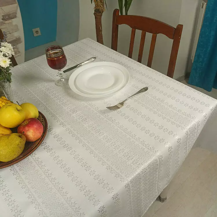 Білий тканий столовий набір 130х145 см, Без серветок