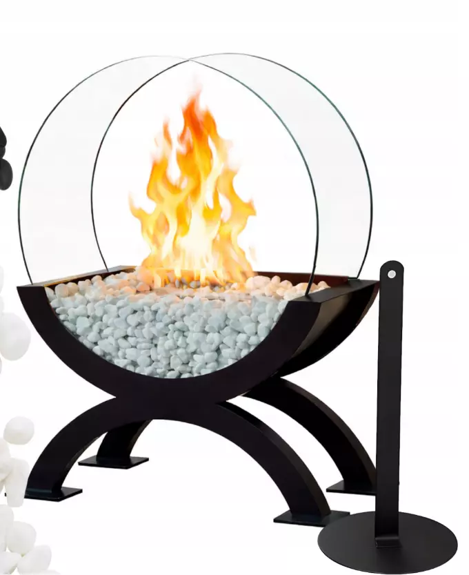 Настільний біокамін із декоративною галькою та гасником полум’я
