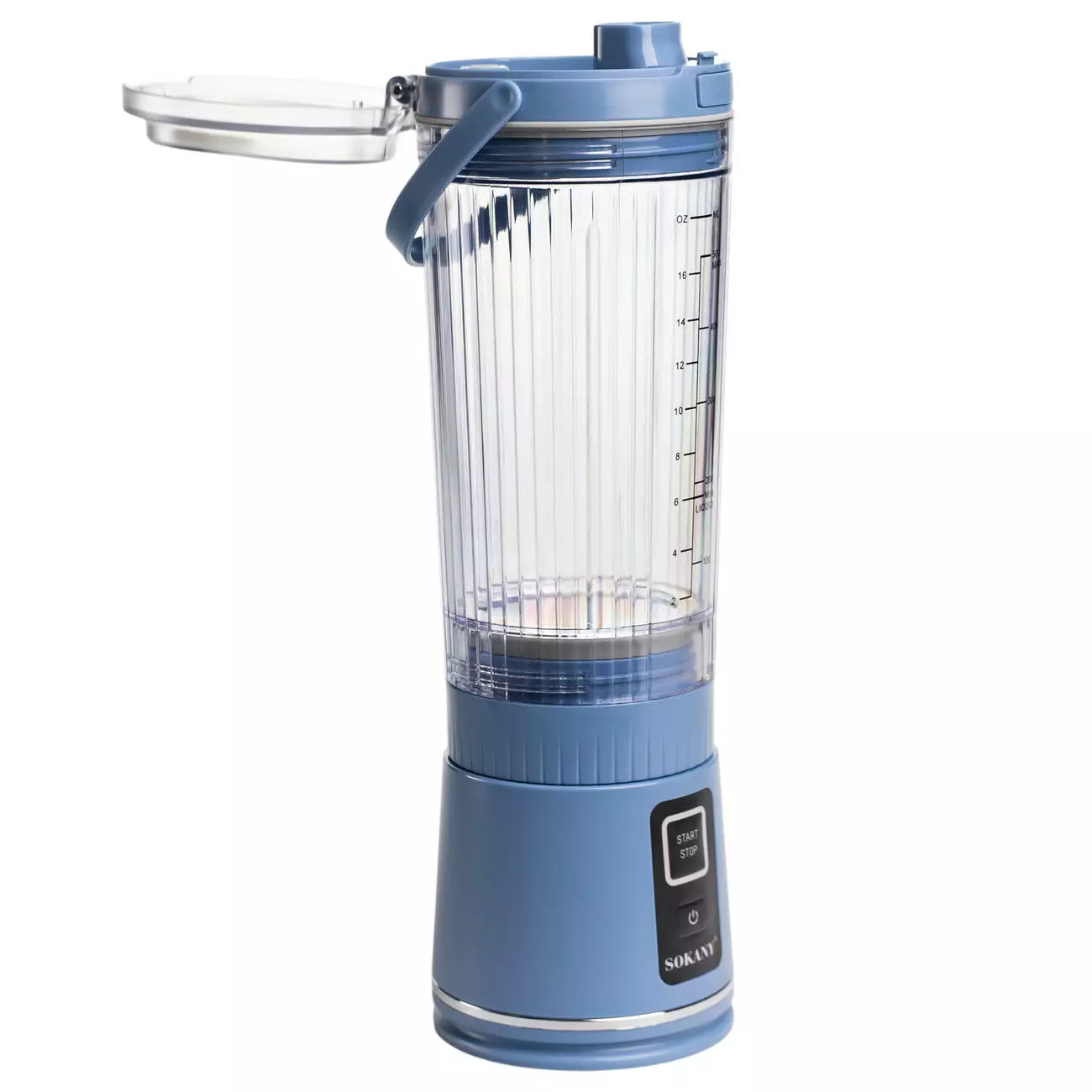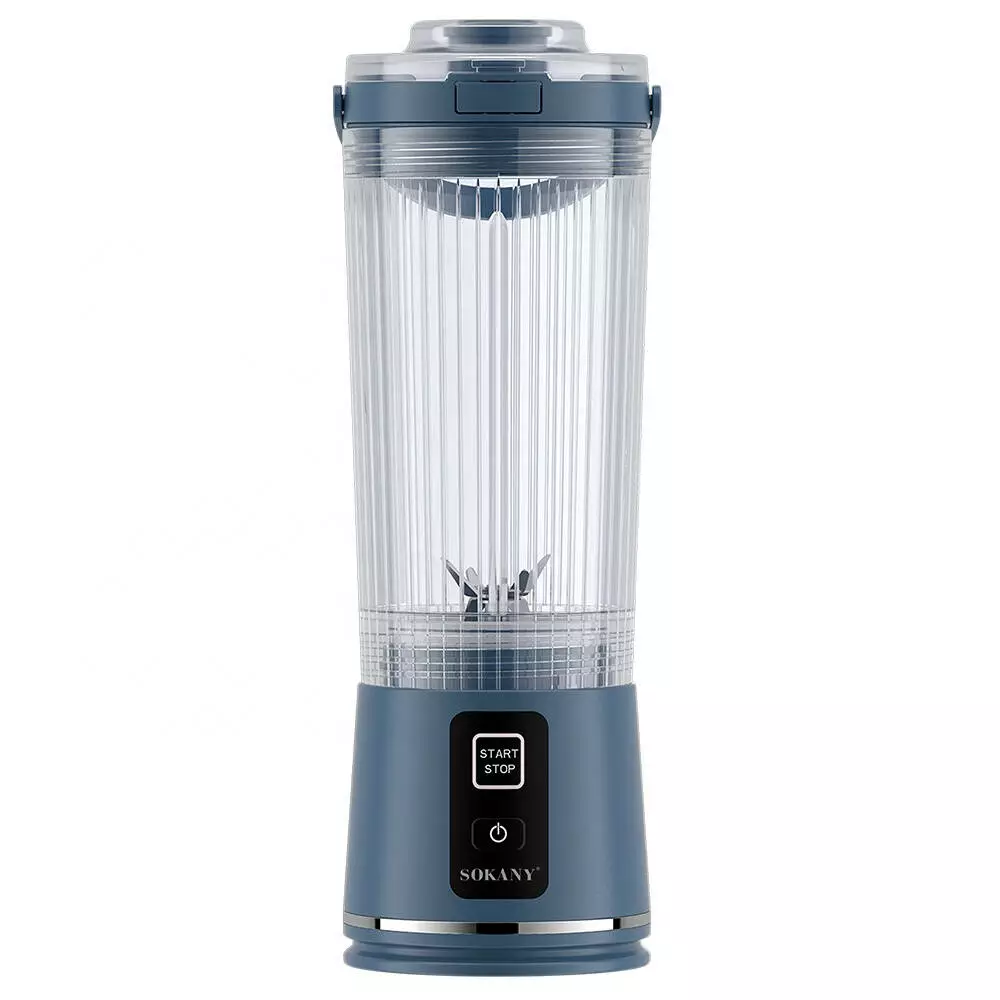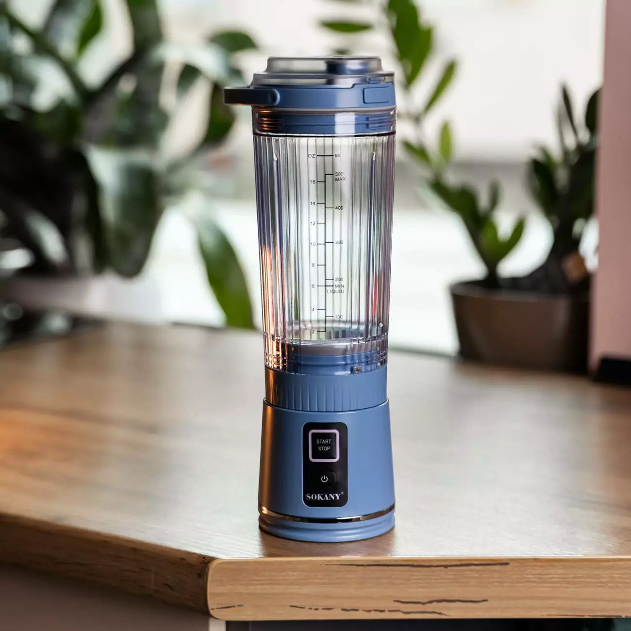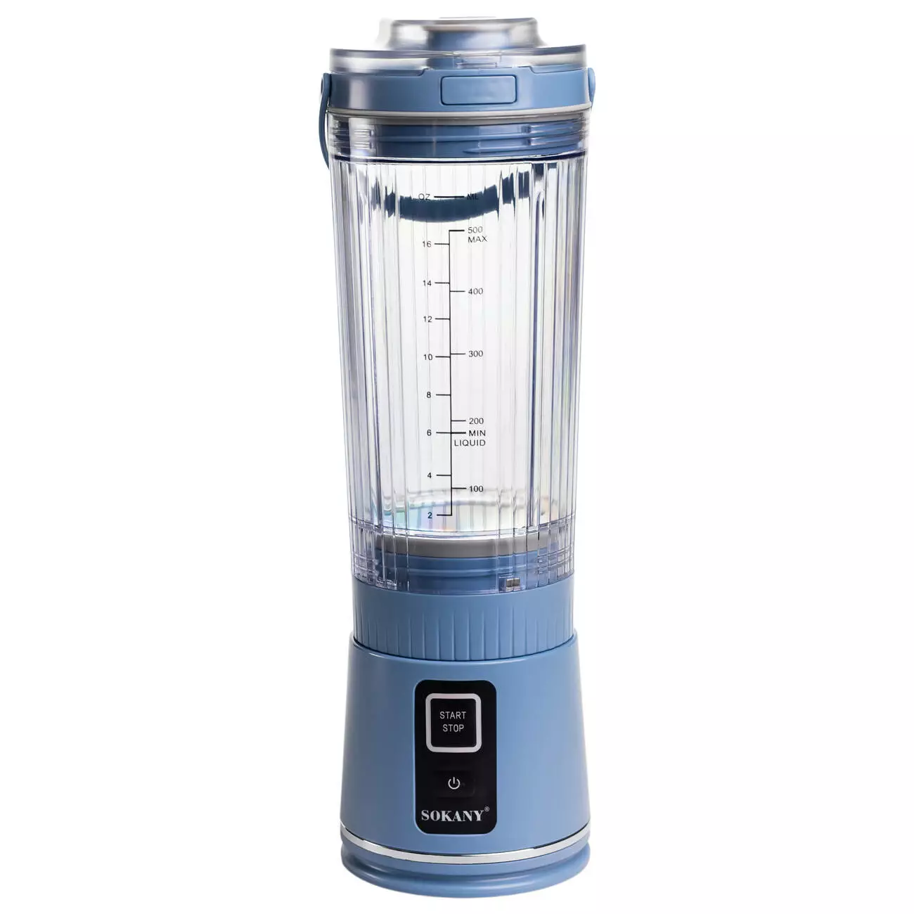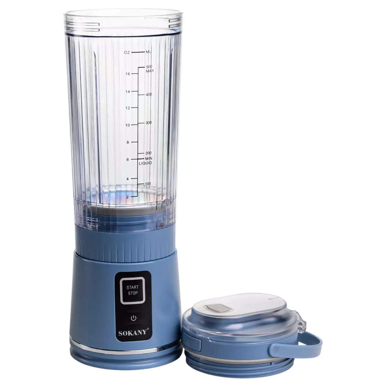 Блендер-шейкер портативний 2-в-1 Sokany SK-01023 для коктейлів 500 мл з USB-зарядкою, синій