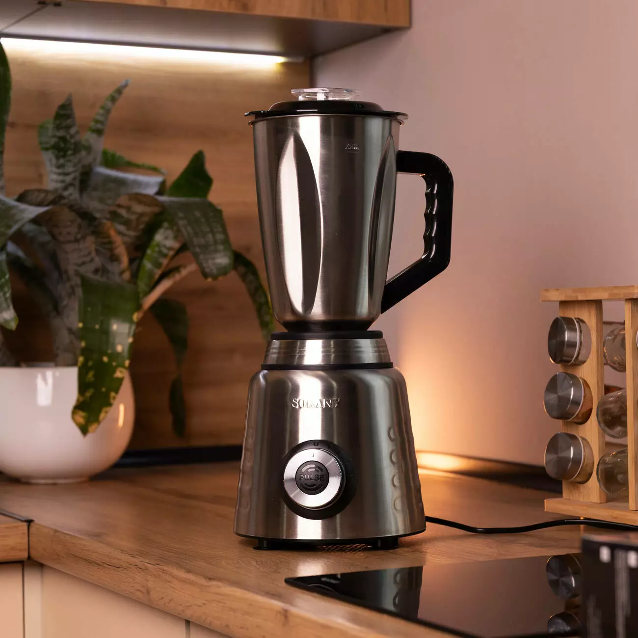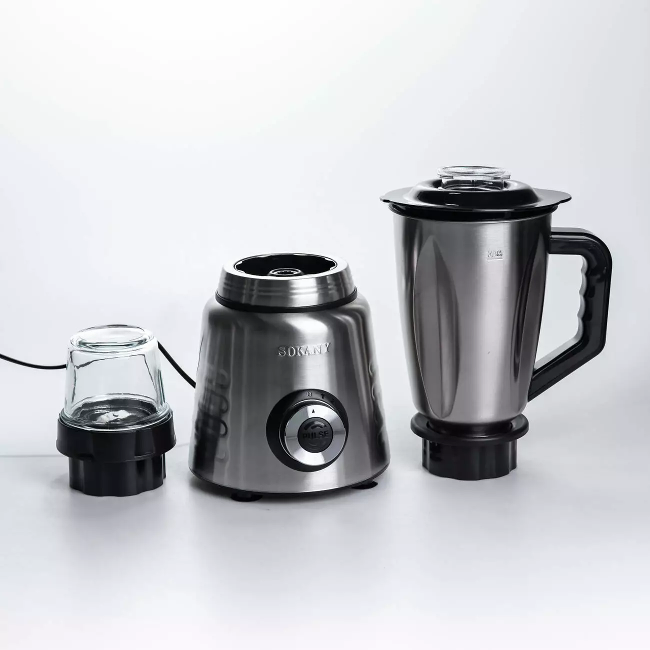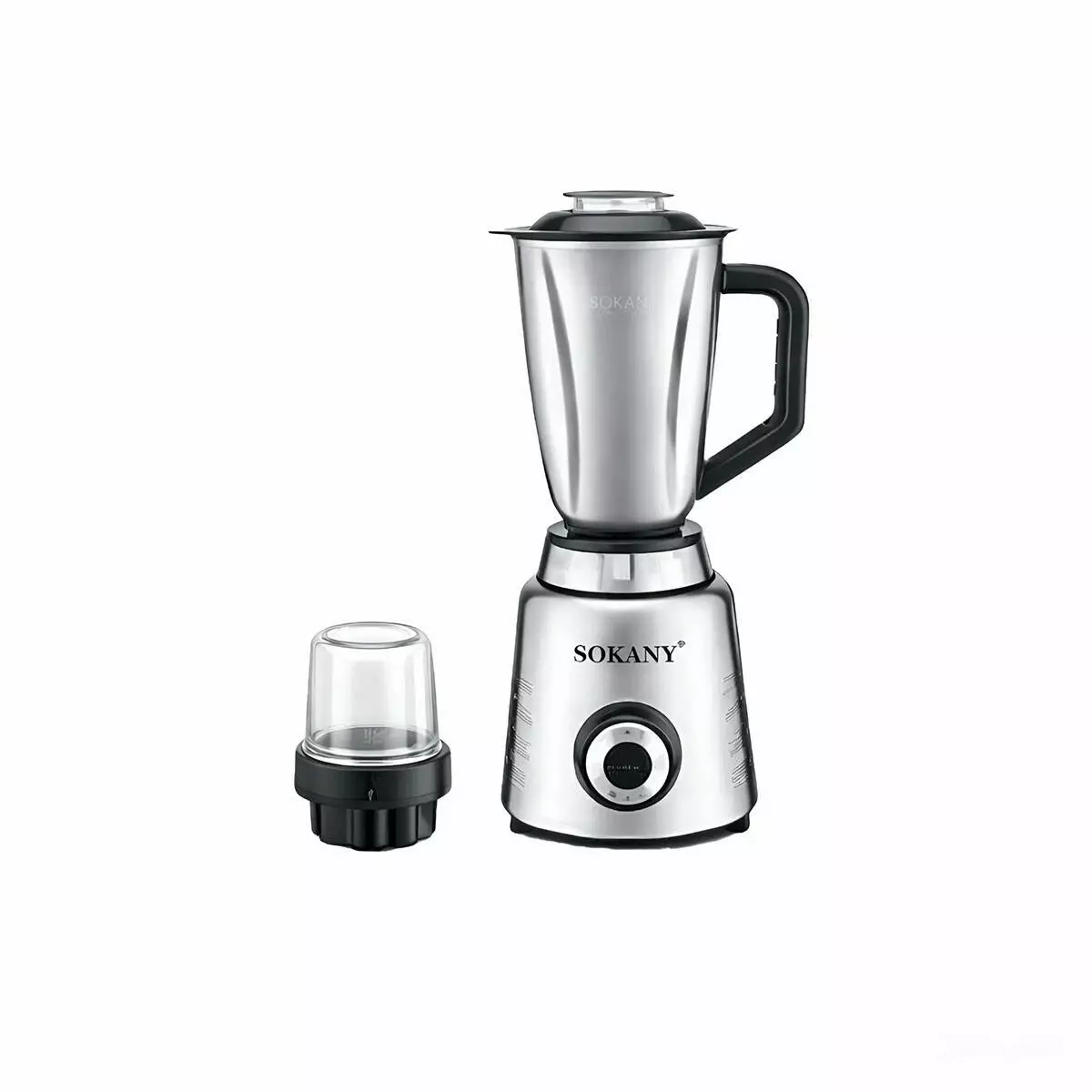 Стаціонарний блендер Sokany SK-03075 призначений для подрібнення та змішування інгредієнтів різної текстури. Основна чаша об’ємом 1,6 л використовується для приготування напоїв, соусів і пюре. Додаткова кавомолка підходить для подрібнення кавових зерен, спецій і горіхів. Корпус виготовлений з пластику з елементами з нержавіючої сталі, що спрощує догляд.