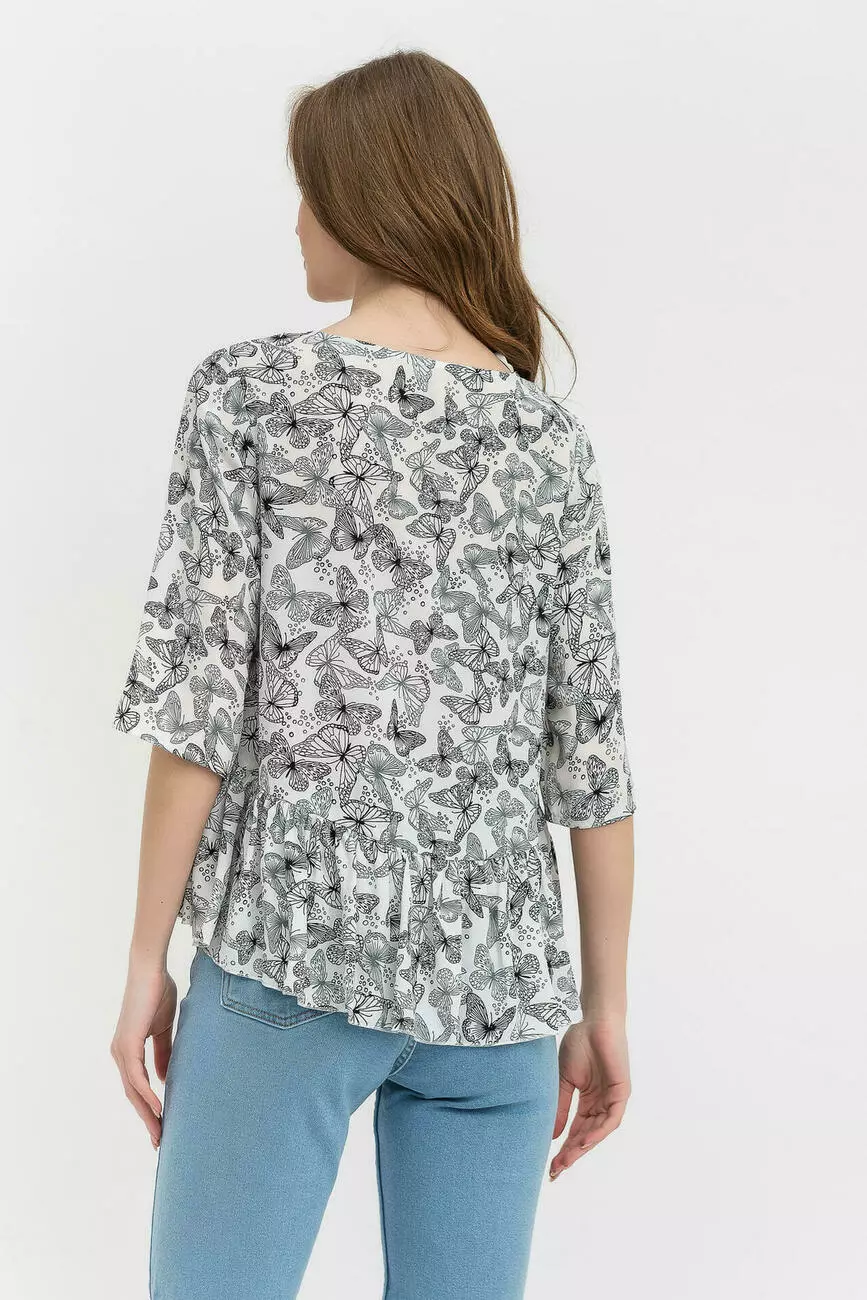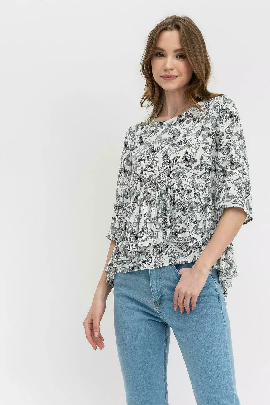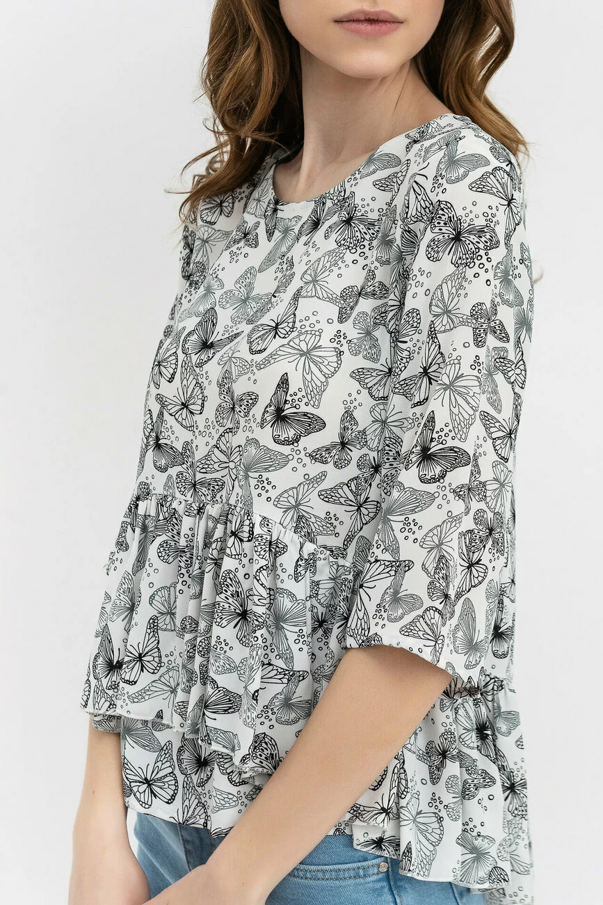 Оригинальная блуза из шифона креп с принтом бабочек