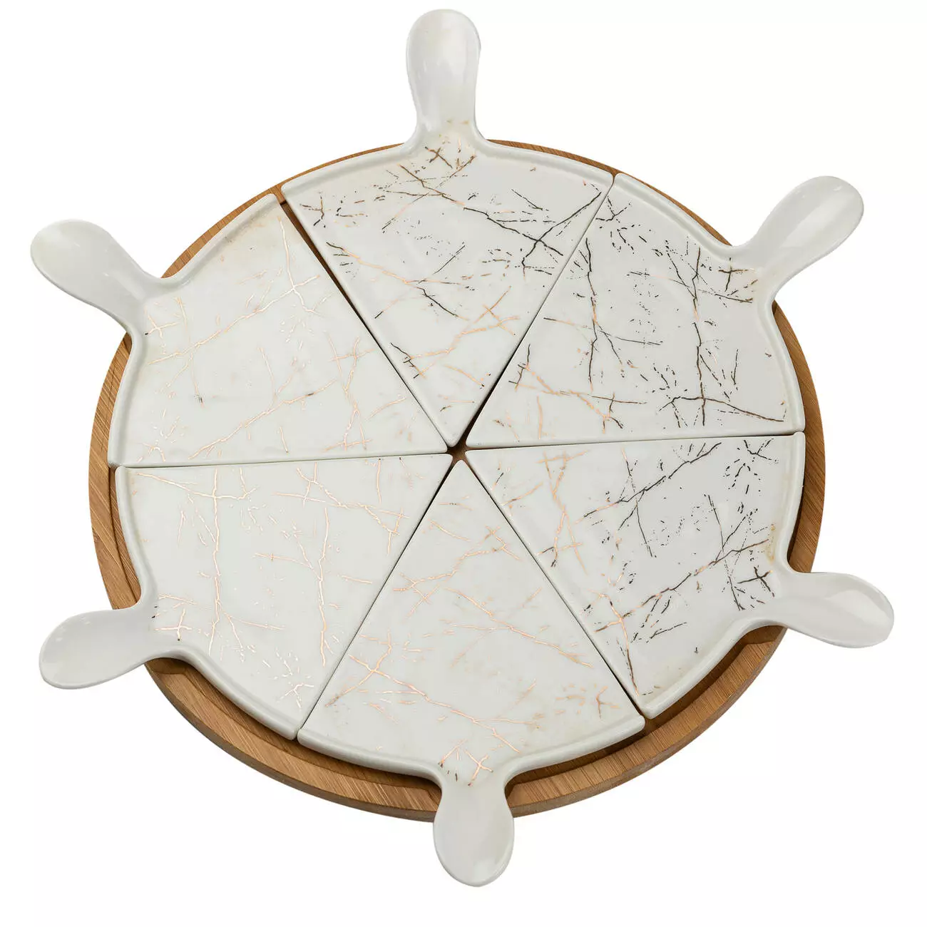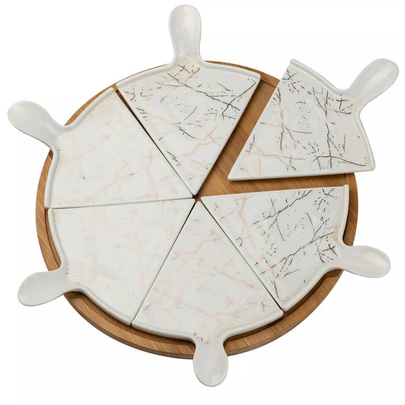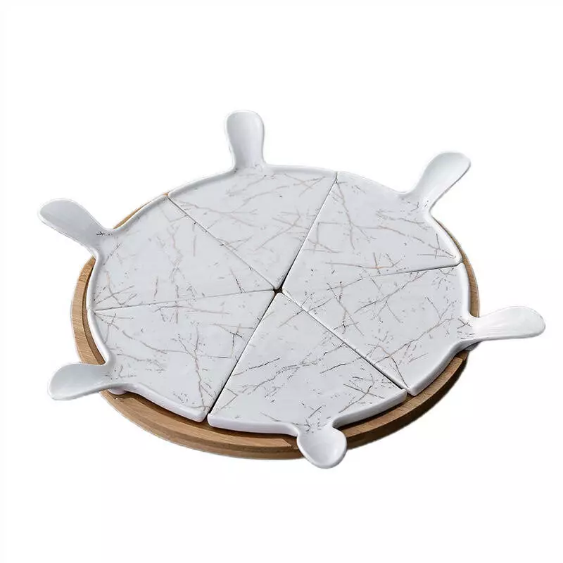 Блюдо для піци порцелянове на поворотній підставці, білий мармур