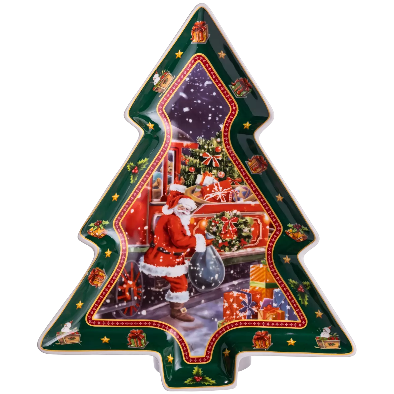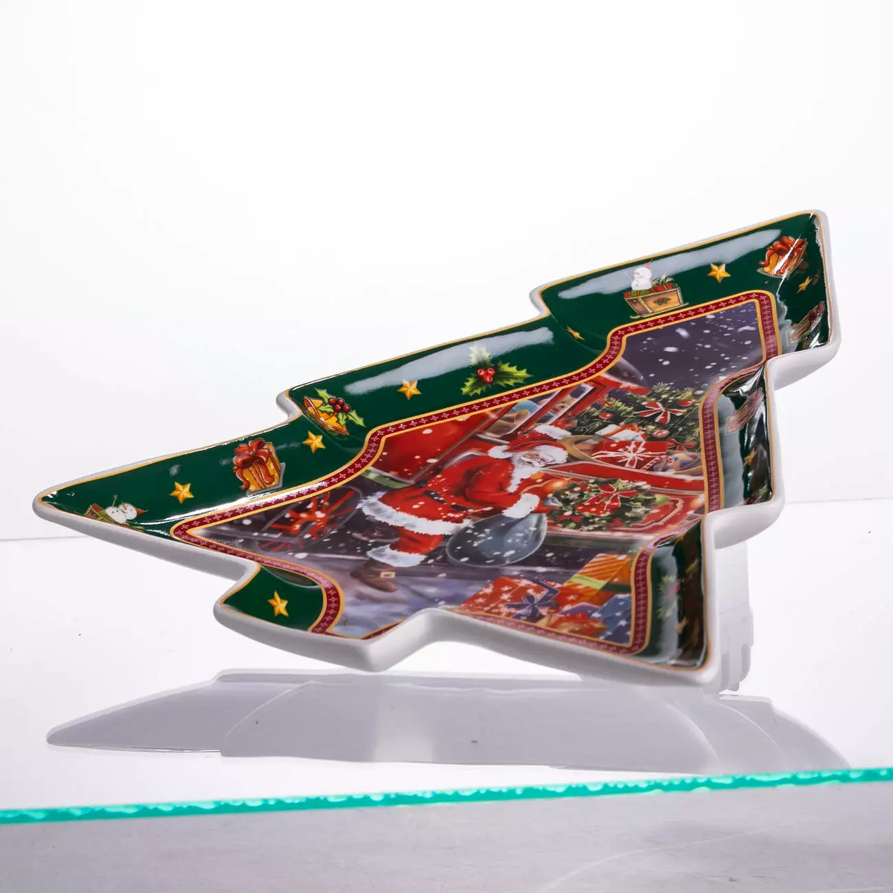Це велике сервірувальне блюдо створене, щоб стати яскравим і незабутнім центральним елементом новорічного та різдвяного сервірування. Завдяки оригінальній формі ялинки та святковому малюнку, воно миттєво створить атмосферу казки.