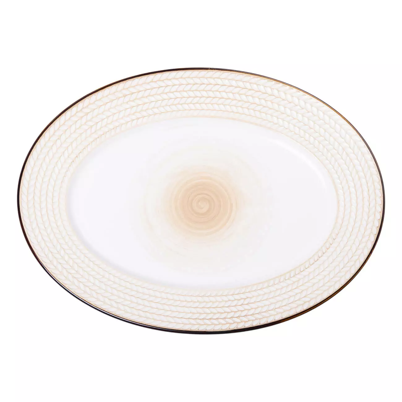Овальне порцелянове блюдо в стилі ретро — стане справжньою окрасою вашого столу. Його елегантний білий колір з витонченим коричневим візерунком підкреслить красу будь-якої страви. Гладенька глянцева поверхня надає блюду витонченого вигляду, а ретро-стиль додає йому нотку старовини та тепла.
