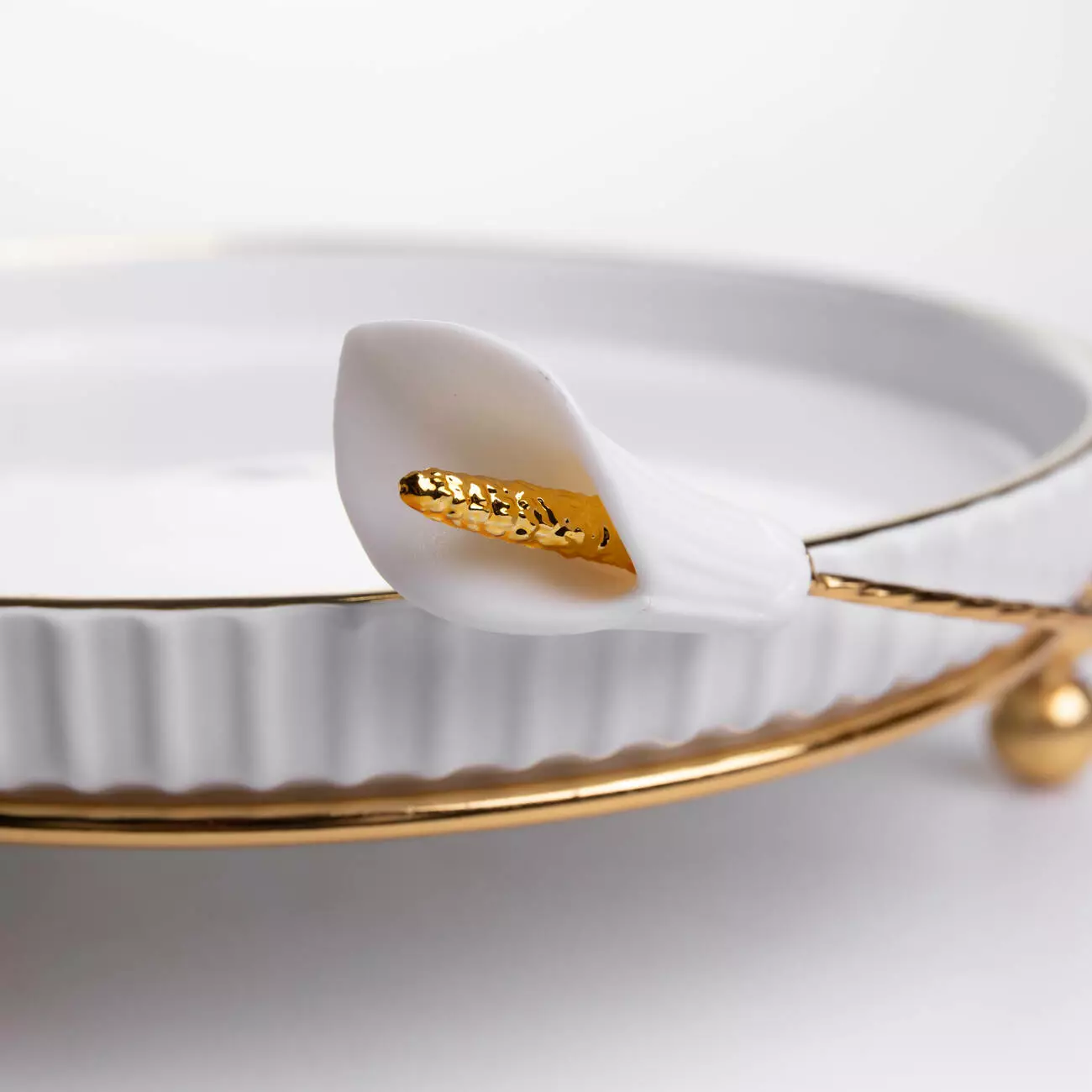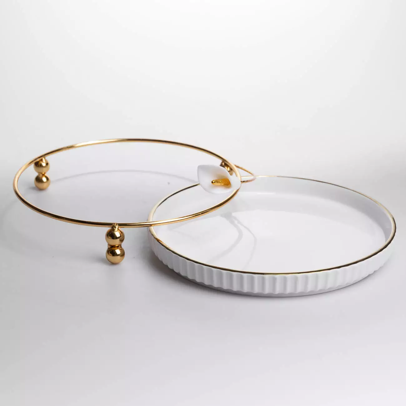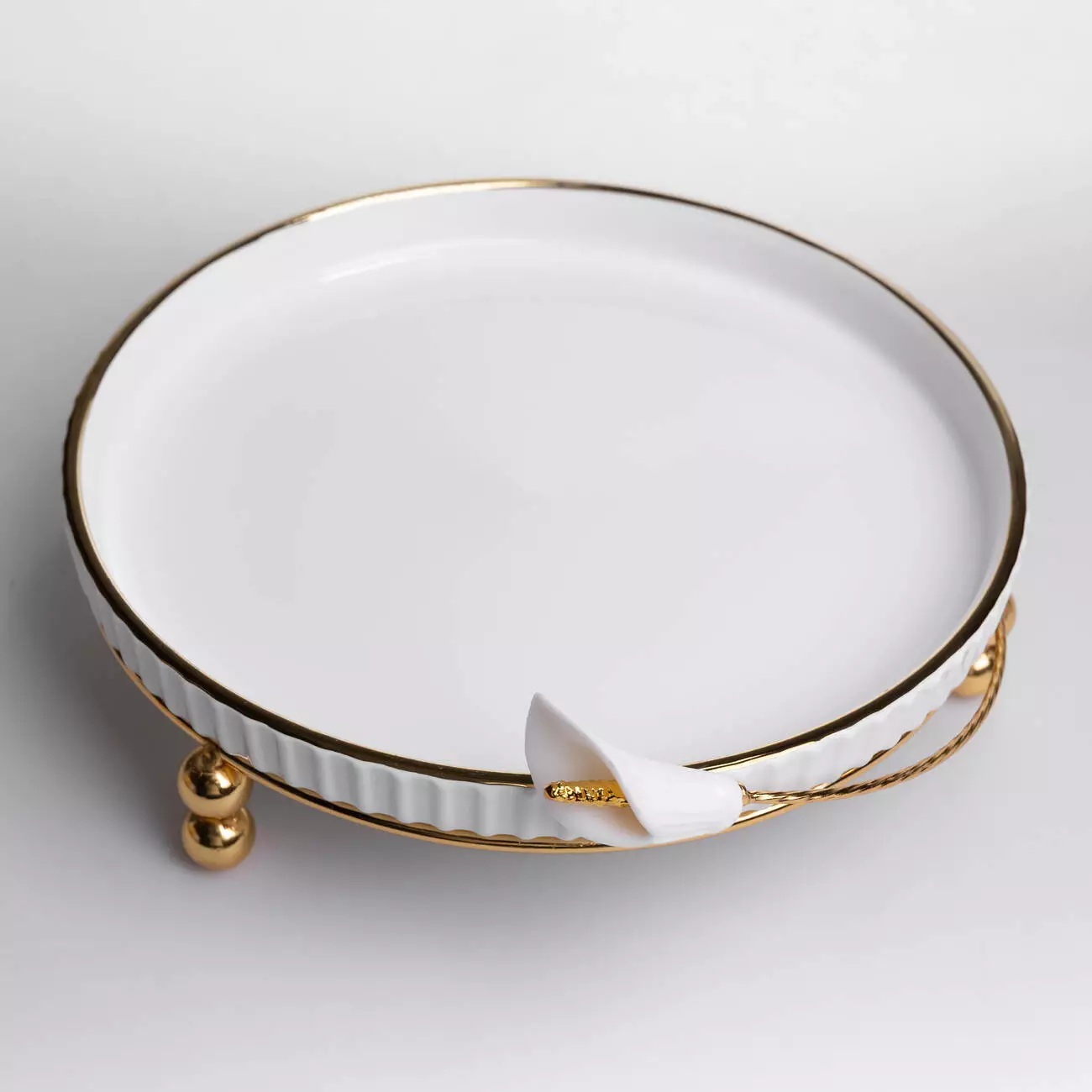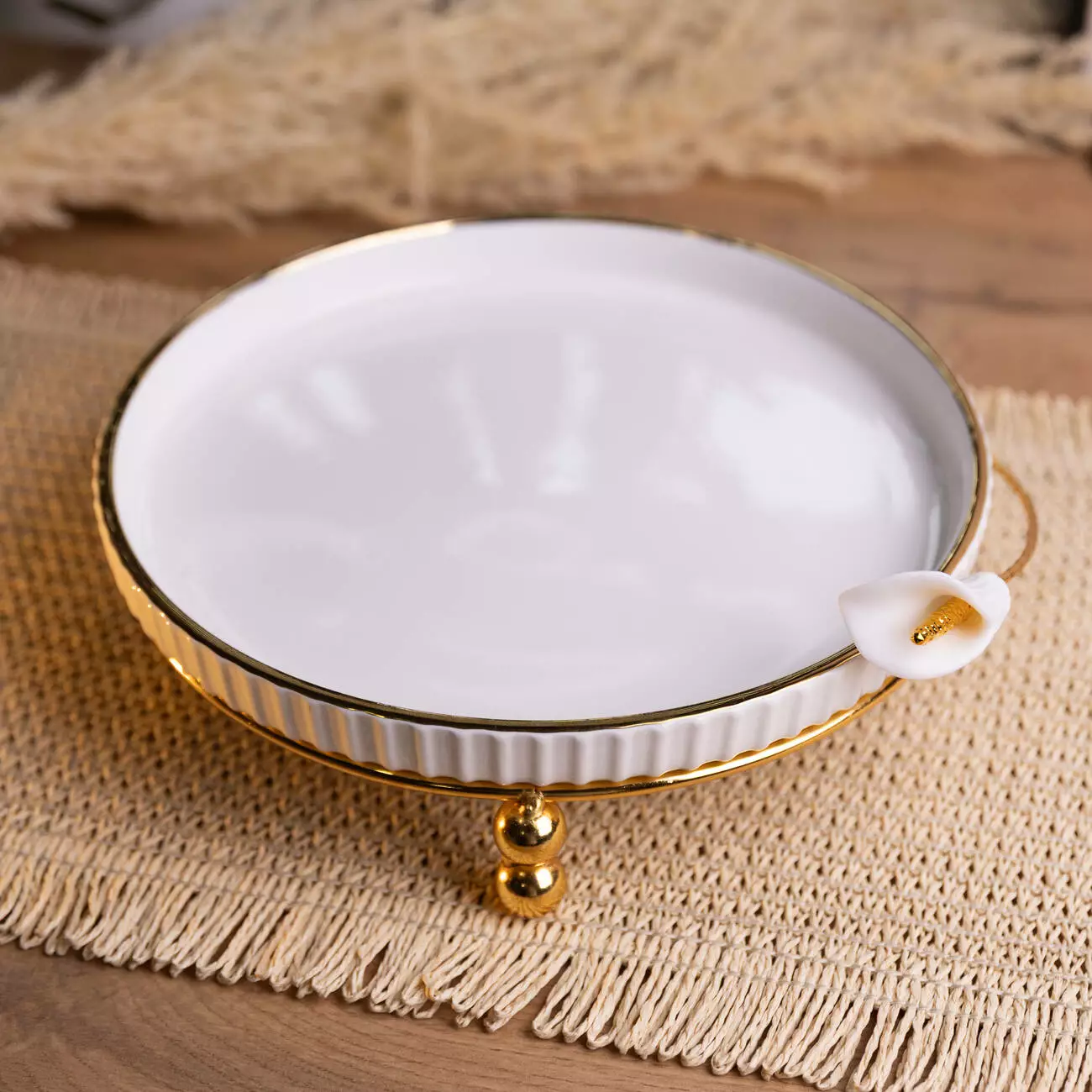 Елегантне глибоке блюдо з білого фарфору на декоративній підставці. Завдяки збільшеному діаметру модель ідеально підходить для центрального сервірування столу, ефектно представляючи основні холодні закуски, фруктові композиції або випічку.
