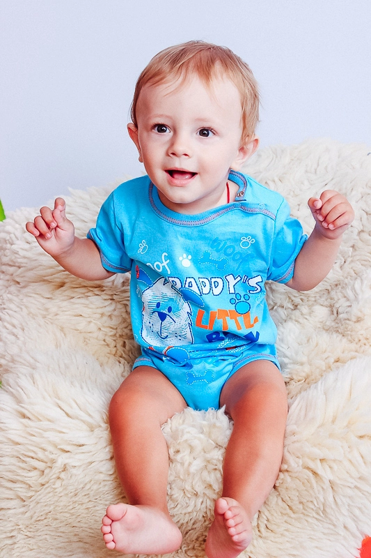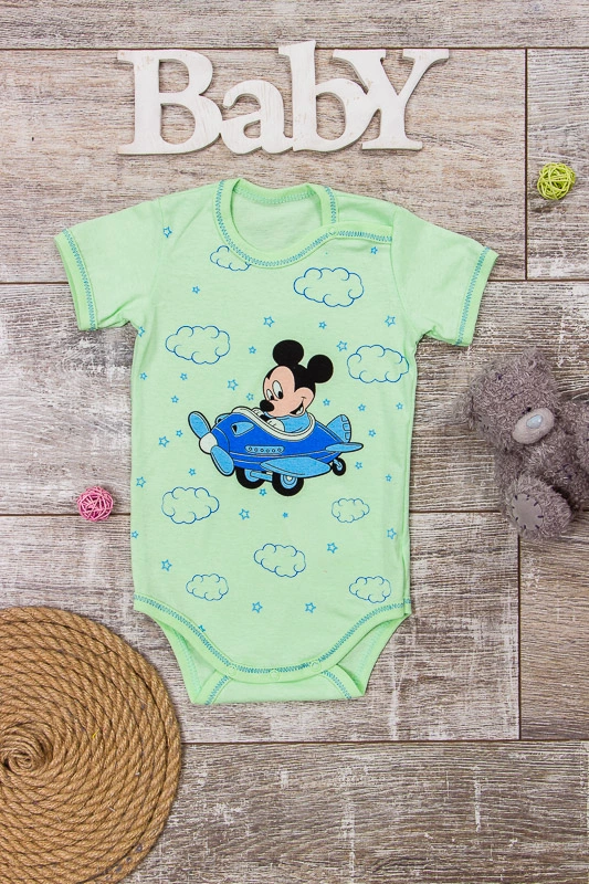 з коротким рукавом. Застібається на кнопки між ніжок для зручної