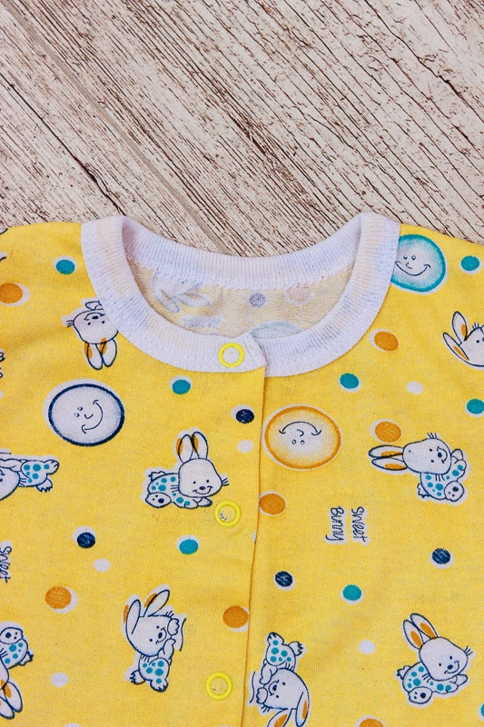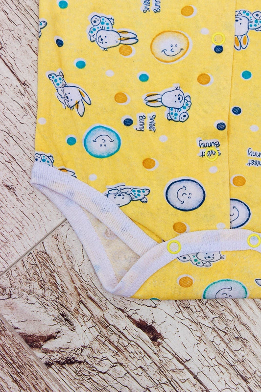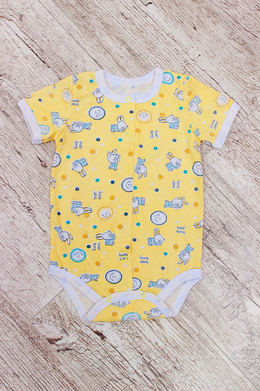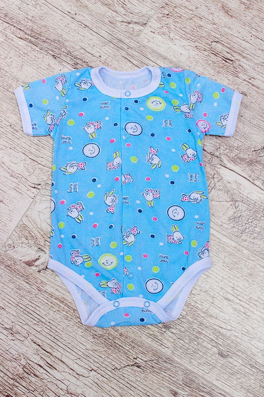 Комфортний ясельний боді з коротким рукавом, з набивного кулира. Одяг з нього виходить легкий і повітряний. Кулір НЕ викликає алергії, так як відшивається з натурального матеріалу. Виріб по всій довжині застібається на кнопки, що дуже зручно при переодяганні малюка.Модель призначена для носіння на свіжому повітрі в літню пору. Якість матеріалів бездоганна, бавовна відрізняється своїми натуральністю, приємлимістью для шкіри і хорошою стійкістю до зносу. Догляд: прання при температурі 30 градусів, без попереднього замочування. Барабанна сушка заборонена; прасувати при t не більше 110С; з вивороту; при пранні не змішувати з іншими типами тканин.