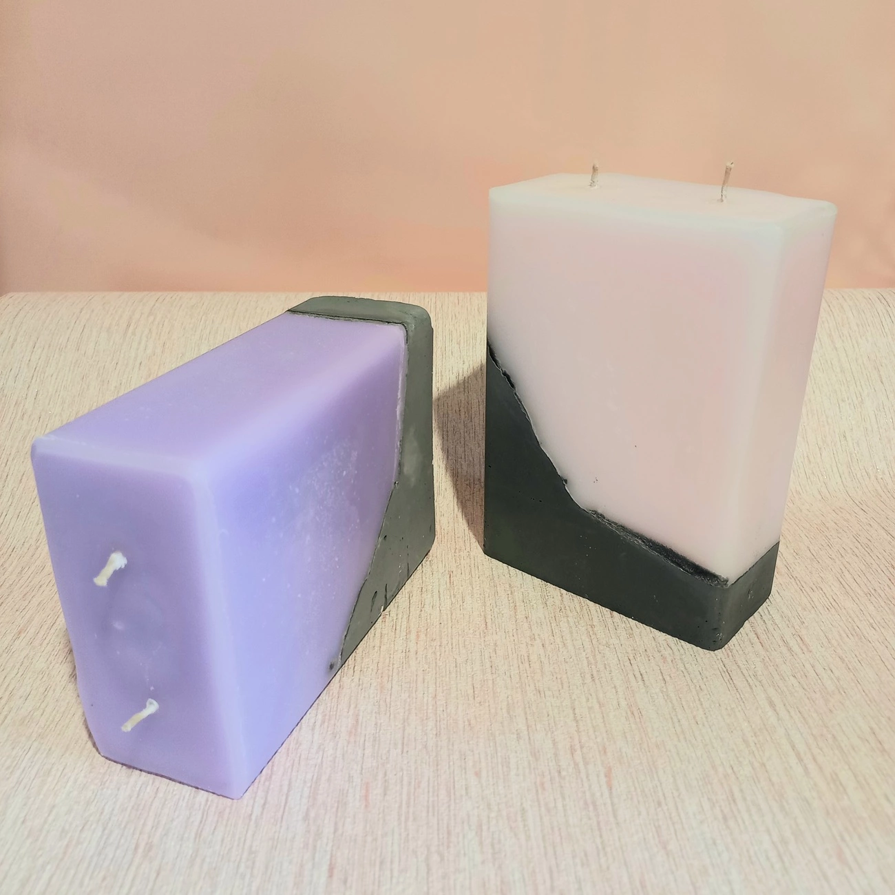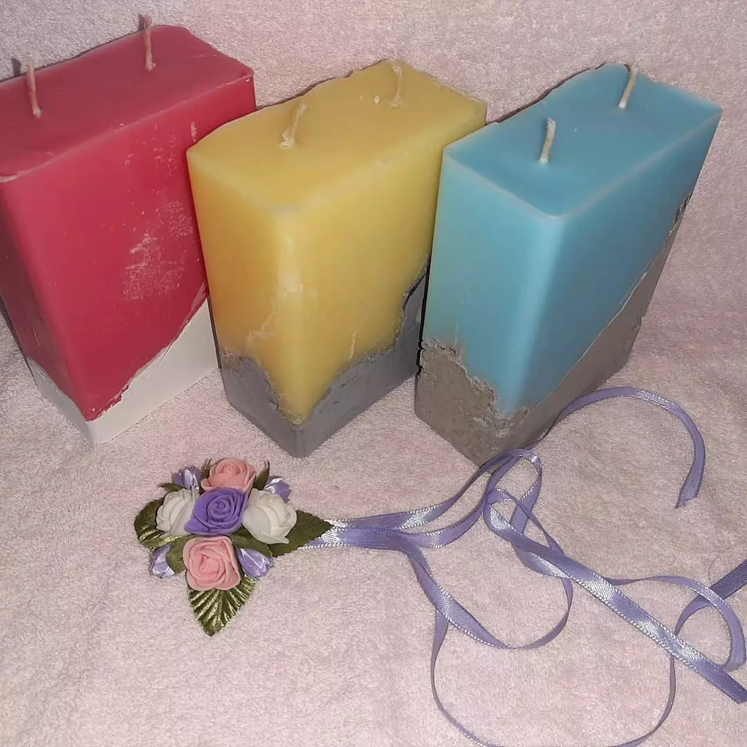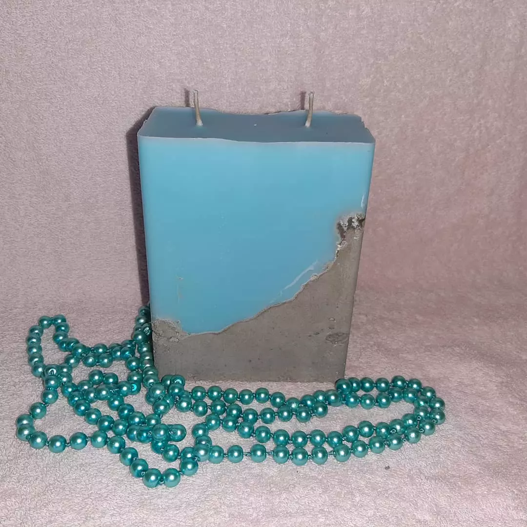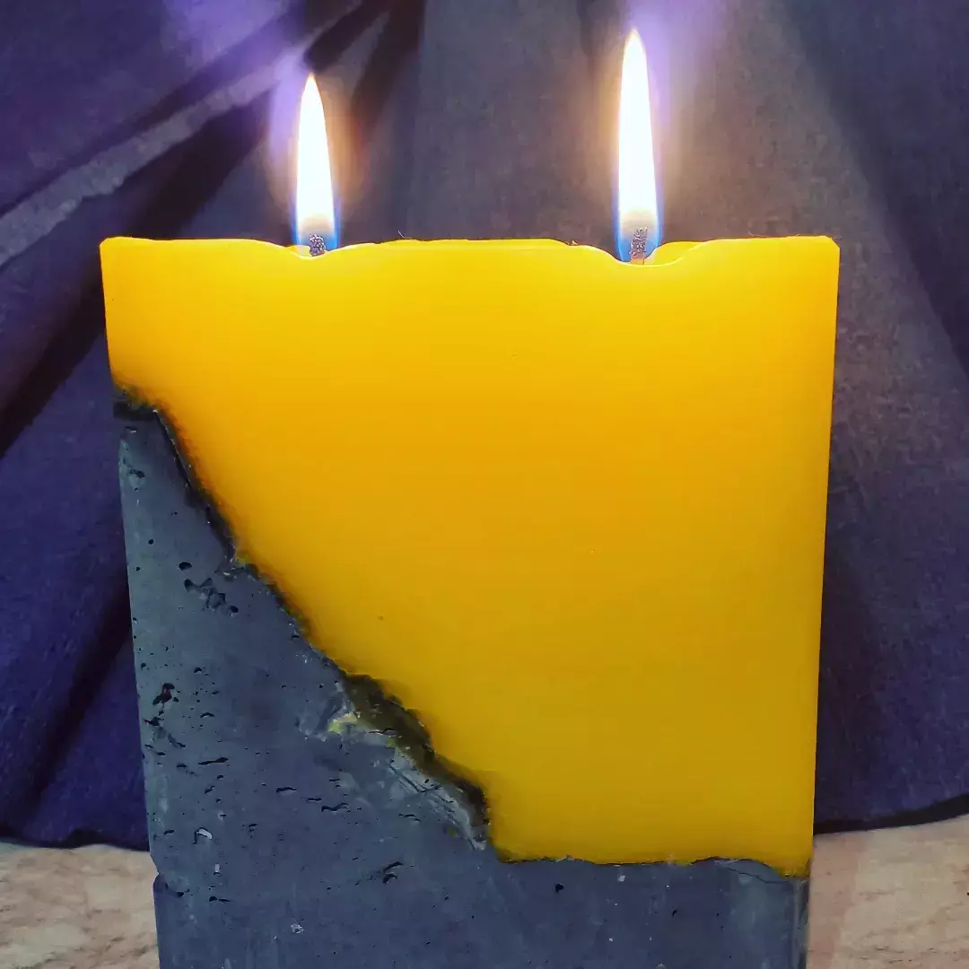 Касетна прямокутна свічка на бетоні. Має 2 гноти. Таку свічку