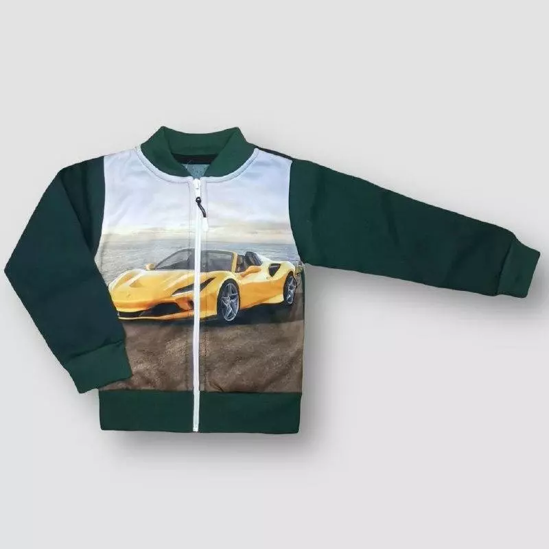 Бомбер для мальчика на флисе с сублимацией Машинки