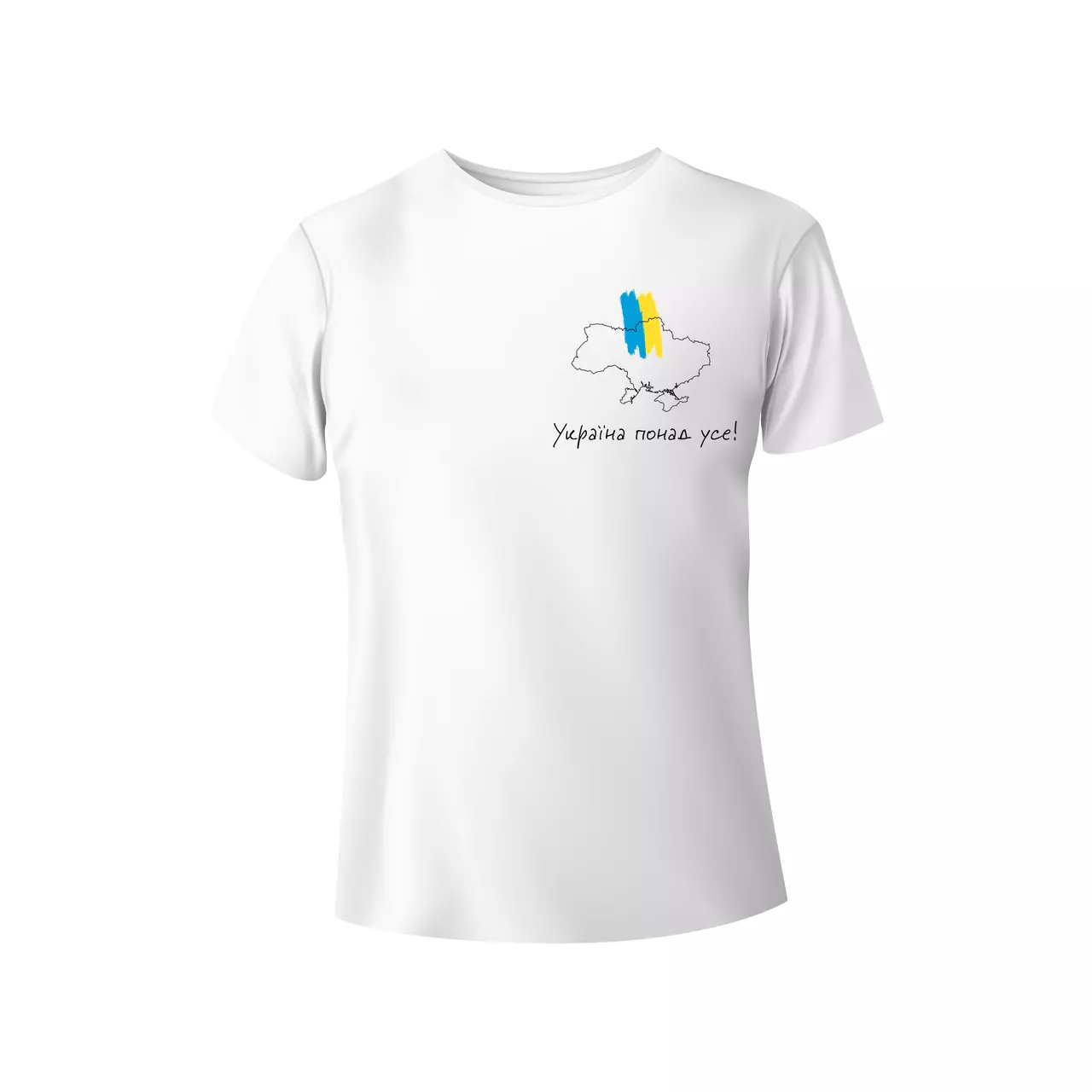 Однотонна жіноча футболка класичного крою з патріотичним принтом, виконана з бавовни з додаванням еластану. М’який, еластичний матеріал приємний до тіла, добре пропускає повітря та зберігає колір. Обирай свій принт та демонструй любов до України у повсякденних образах. Якісний принт стійкий до зношування та зберігає яскравість за умови дотримання рекомендацій по догляду.