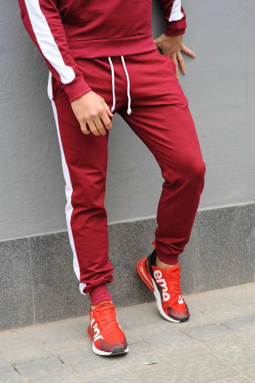 Бордовые спортивные штаны с лампасами мужские / Мужские спортивные брюки с лампасами весна/лето/осень