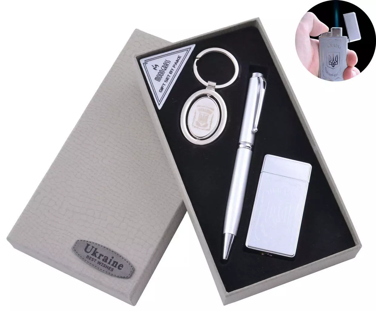 Подарочный набор брелок, ручка, зажигалка UKRAINE (Острое пламя) AL-111