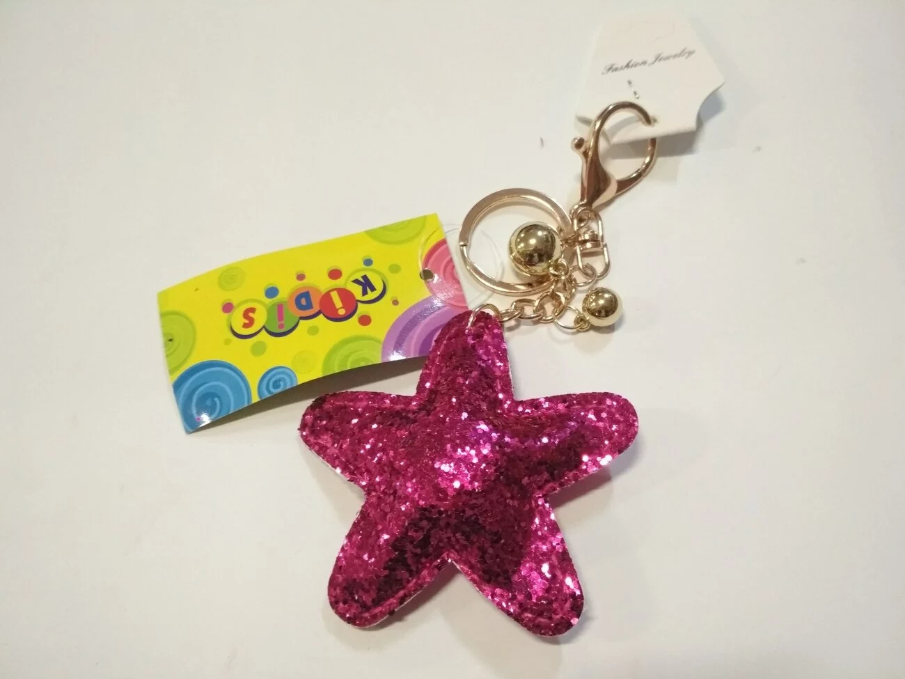 Брелок з матеріалу з блискітками 3 кольори в кожному дизайні (зірки і сердечка різні кольори мікс)