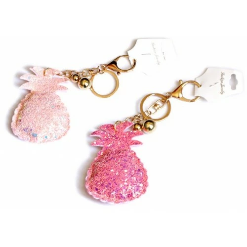 Брелоки з матеріалу з блискітками 3 кольори в кожному дизайні (ананаси і єдинороги різні кольори мікс)