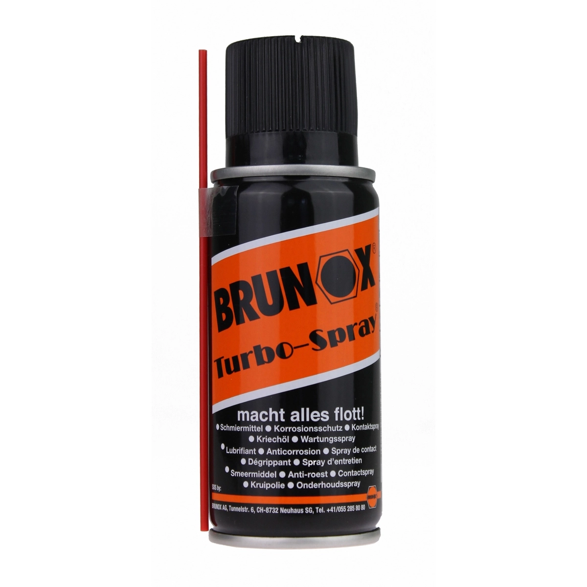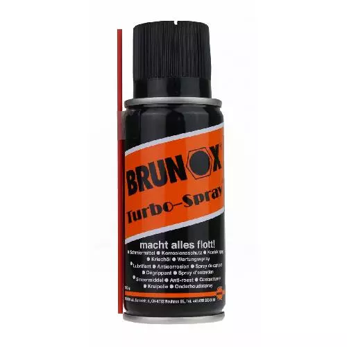 Масло Turbo-Spray – универсальное средство от компании Brunox, которое предназначено для повседневного ухода за оружием и его чистки. Может также применяться для временной консервации (защита от коррозии на срок до полугода). Эта смазка быстро и эффективно разрыхляет и растворяет мелкие частицы металлов, томпака и пороха. Из канала ствола масло после использования удалять не нужно, так как оно создаёт тонкую плёнку для максимальной защиты. Её толщина – 2 микрона, она не высыхает и не затвердевает, а потому долгое время вытесняет влагу и защищает механизмы оружия от возникновения коррозийных процессов.