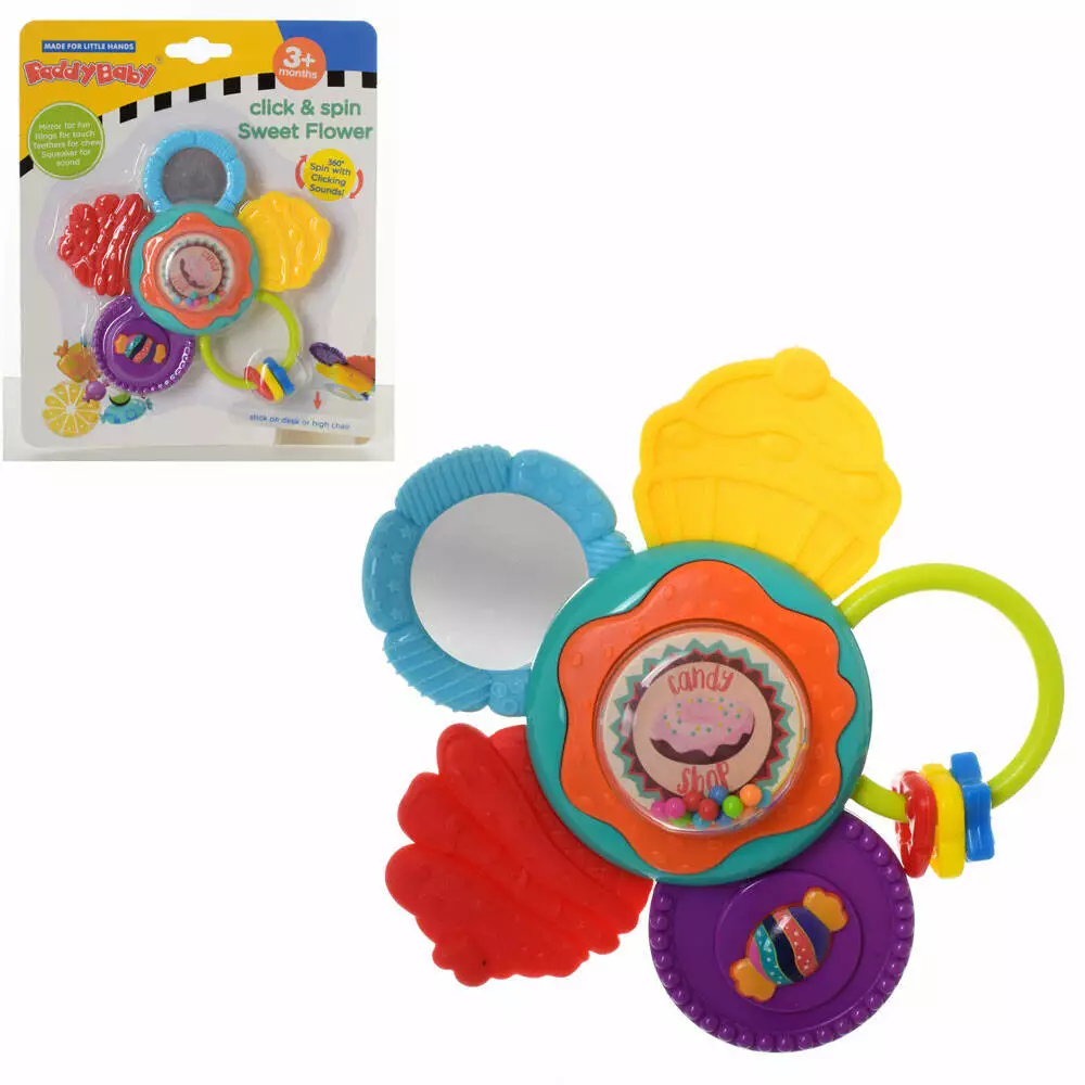 Фотография 1 товарной позиции интернет-магазина детских игрушек www.smarttoys.com.ua Брязкальце 0884 квітка, на присосці, прорізувач, дзеркальце, 20-24-5,5 см.