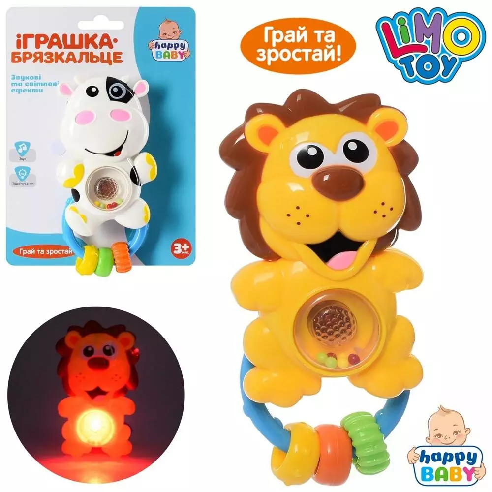 Фотография 1 товарной позиции интернет-магазина детских игрушек www.smarttoys.com.ua Брязкальце HB 0018 CD 2види (лев,корова), муз., світло, бат.(табл.), лист, 15-20-3,5см.