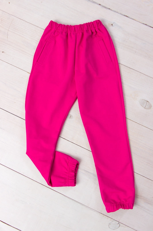 Модель виконана з полотна - двонитка. Трикотаж мало мнеться, відрізняється своїм повітрообміном. Пояс штанів та нижня частина на резинці. Штани доповнені кишенями для зручності.Спортивні штани відмінно підійдуть для занять фізкультурою, а також для активного відпочинку, поїздок на природу і для використання в якості домашнього одягу.
