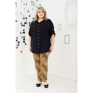 Тканина: масло-70% поліестер; 20% віскоза; 10% еластан. Штани виконані з тканини олія. Крій штанів прямий, без блискавки, пояс на резинці. По передній частині виробу закладені складки. Модель має дві функціональні кишені. Прання рекомендоване при температурі 30-40 градусів у делікатному режимі, прасування на одиницю або на двійку. Розміри :