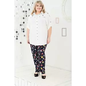 Тканина: масло-70% поліестер; 20% віскоза; 10% еластан. Штани виконані з тканини олія. Крій штанів прямий, без блискавки, пояс на резинці. По передній частині виробу закладені складки. Модель має дві функціональні кишені. Прання рекомендоване при температурі 30-40 градусів у делікатному режимі, прасування на одиницю або на двійку. Розміри :