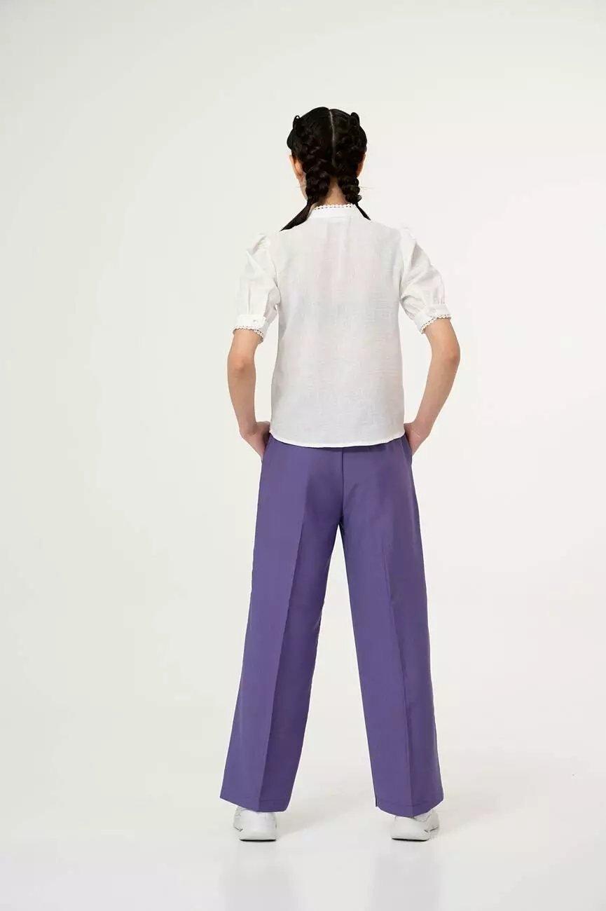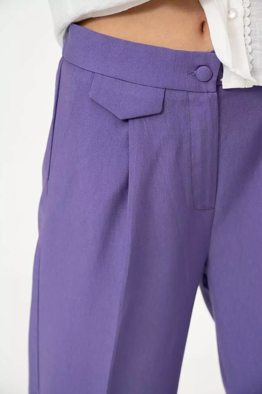 лавандового кольору. Середня висота посадки. На поясі ззаду збірка