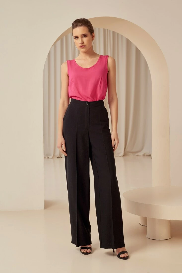 Ці прямі штани з еко-льону — ідеальний вибір для тих, хто цінує якість та екологічність. Виготовлені з натуральних матеріалів, забезпечують комфорт і зручність. Чорний колір додає їм елегантності та стильності, роблячи їх придатними для будь-якого приводу. Можете носити їх як на роботі, так і на вечірці. Прямий крій вигідно підкреслює фігуру, а пояс забезпечує ідеальну посадку. Будьте впевнені, що ці штани стануть вашим улюбленим елементом гардероба!