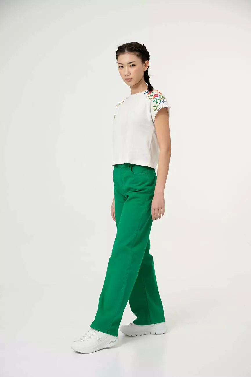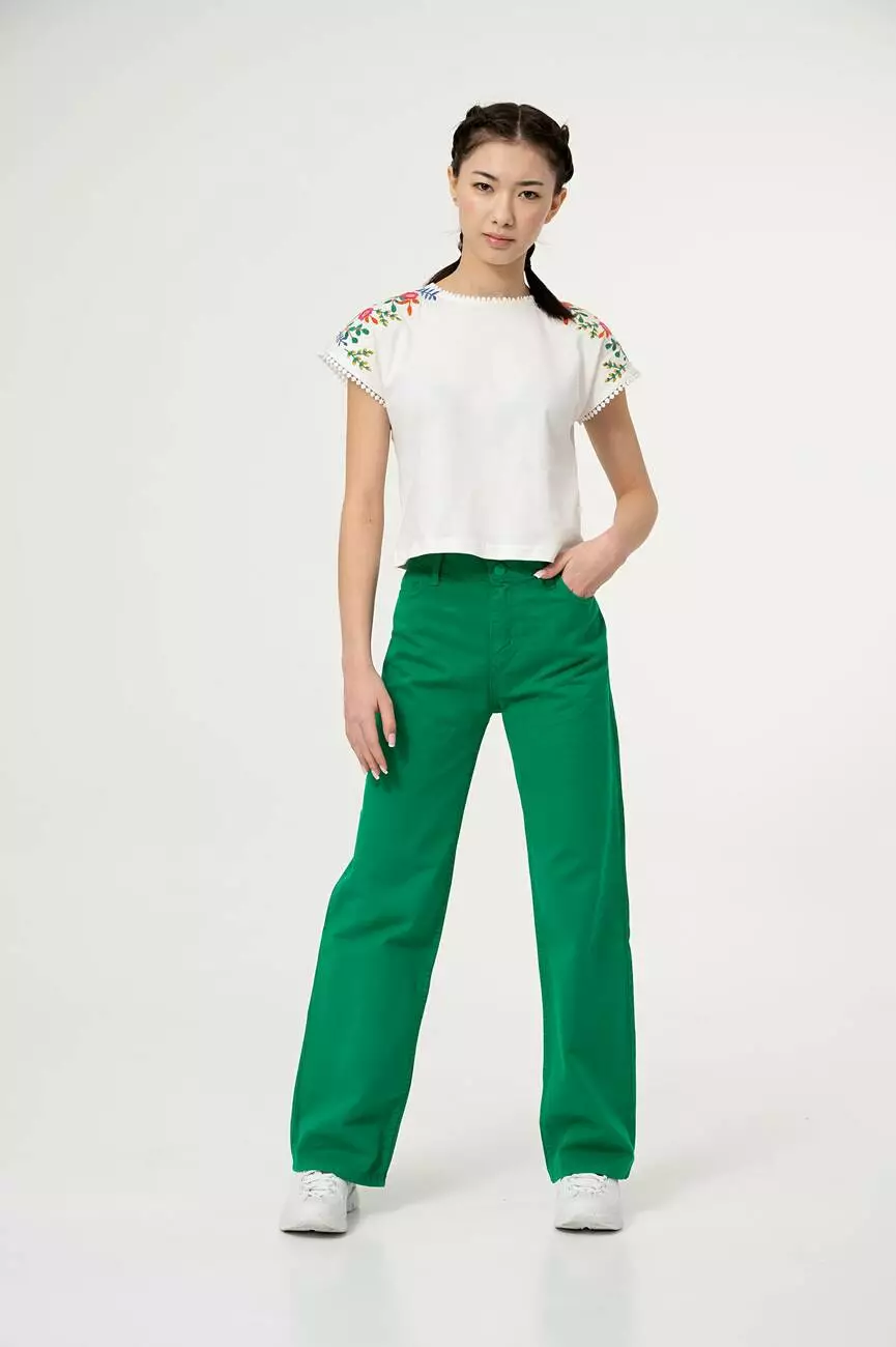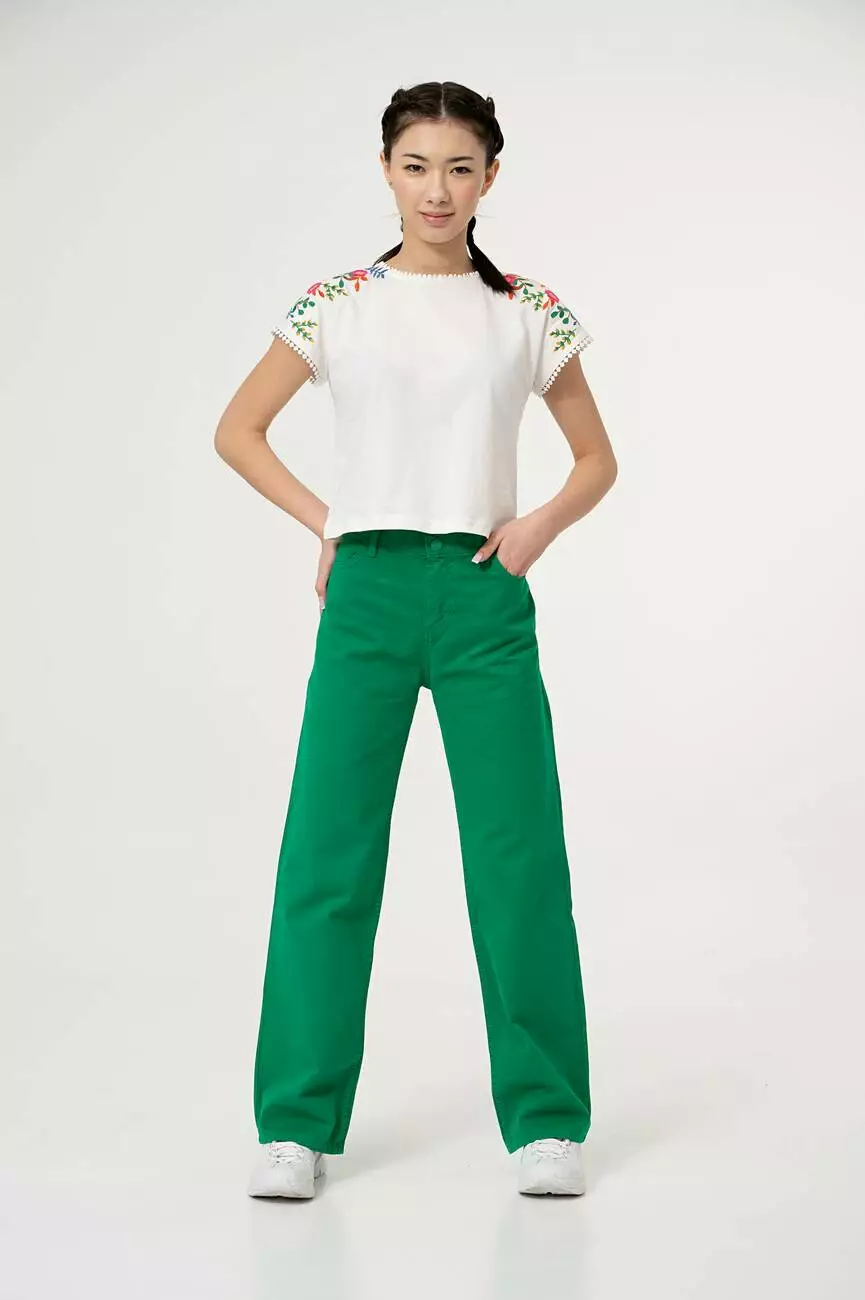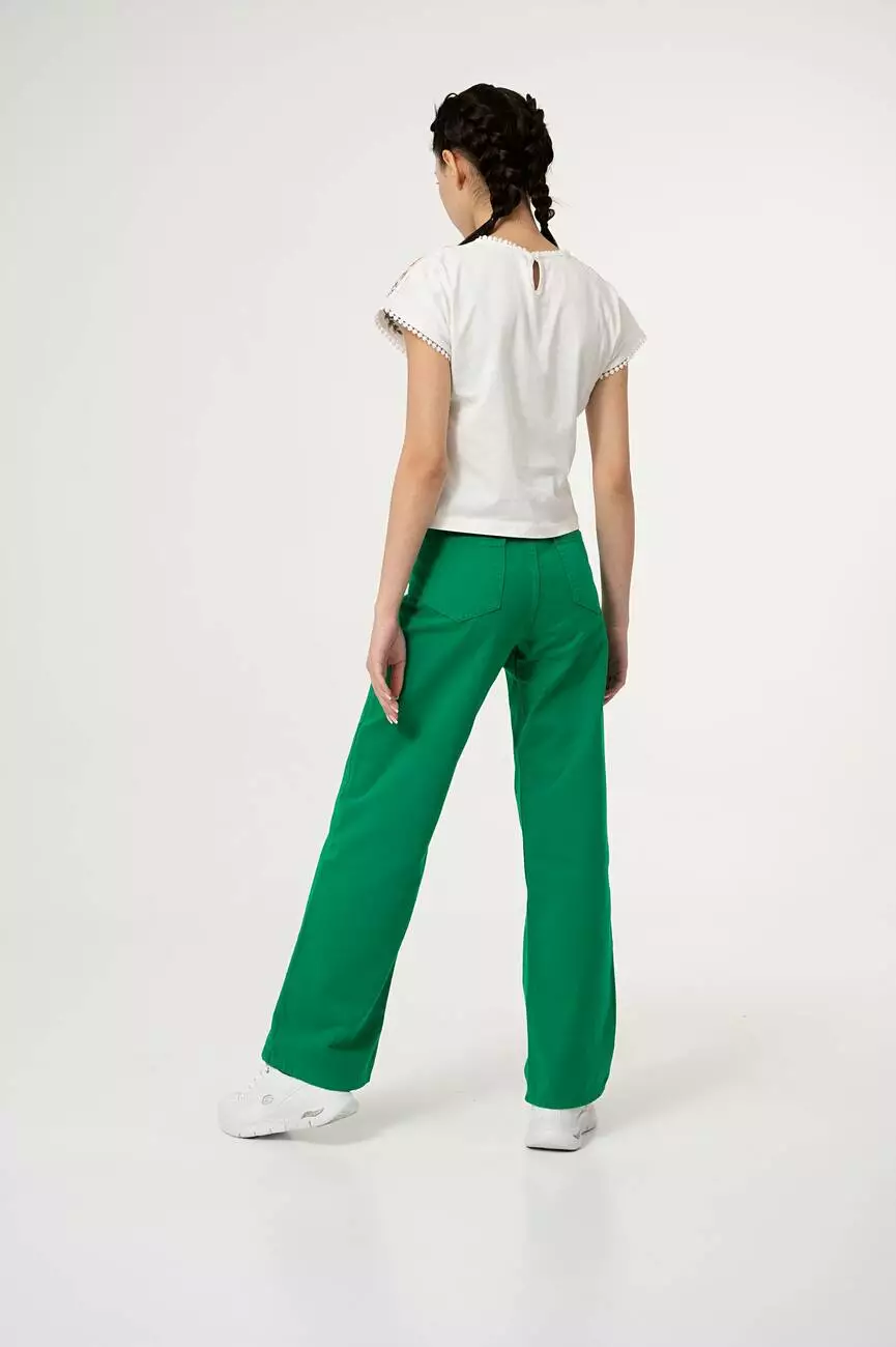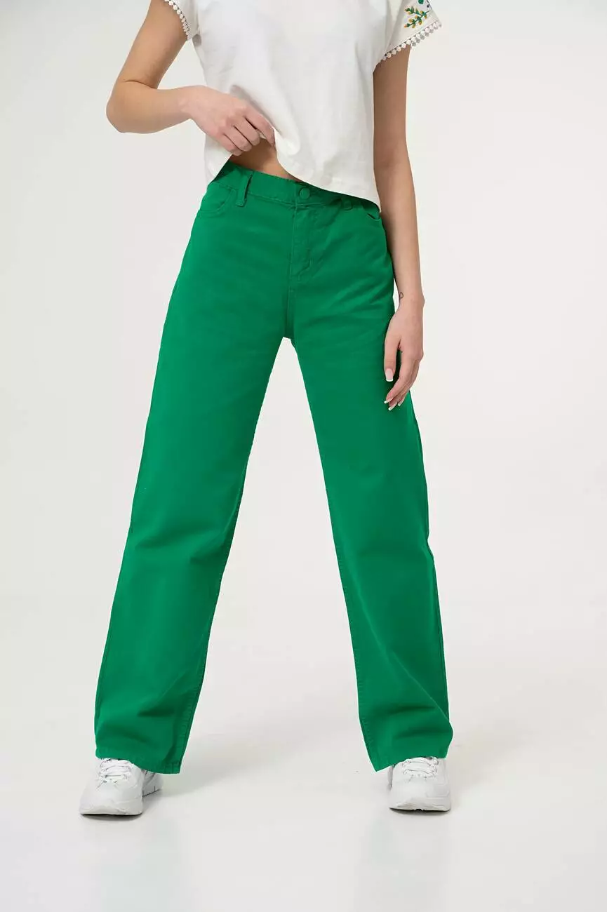 Деталі моделі: брюки зеленого кольору,