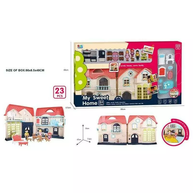 Будиночок 16848 (6) дверний дзвінок, підсвічування ліхтарів, меблі, ляльки, в коробці