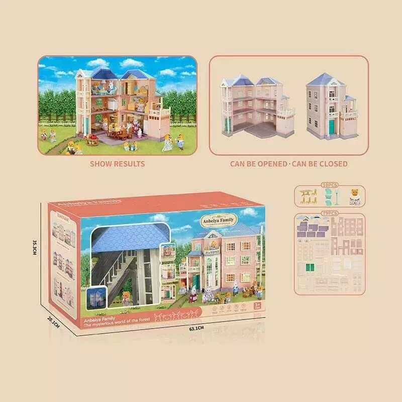 Будиночок 1808 (6) 89 деталей, розсувний, 3 поверхи, меблі, флоксова фігурка, в коробці