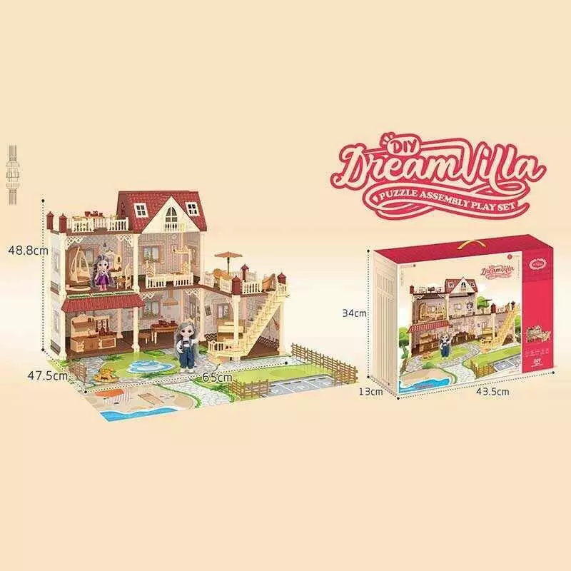 Будиночок VC 6031 (10) 209 деталей, 2 ляльки, рухомі частини тіла, муляжі меблів, музичного інструмента, посуду, в коробці