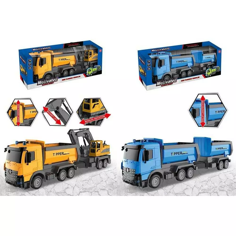 Фотография 1 товарной позиции интернет-магазина детских игрушек www.smarttoys.com.ua Будтехнiка 687-5B-6A інерц.,самоскид,з причепом,рух.деталі,2види(самоскид,екскав.),кор.,57-20-13,5см