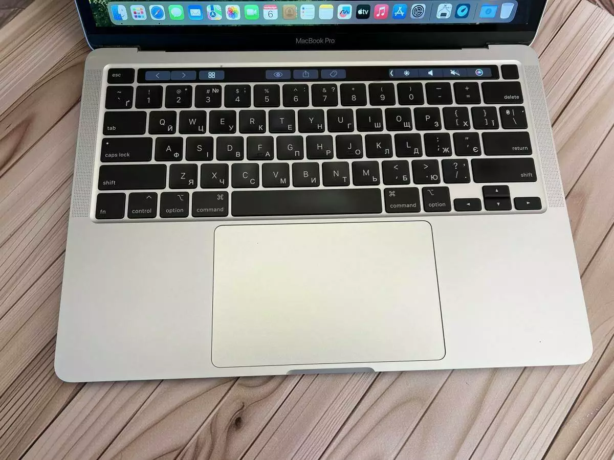 Ця модель оснащена сенсорною панеллю Touch Bar, яка динамічно змінює інструменти залежно від активного додатку. У Final Cut Pro — це таймлайн, у Photoshop — палітра інструментів, у Safari — вкладки та пошук. Клавіатура Magic Keyboard з механізмом "ножиці" забезпечує комфортний хід клавіш та тиху роботу. Touch ID вбудований у кнопку живлення — миттєве розблокування, автозаповнення паролів та безпечні покупки одним дотиком.