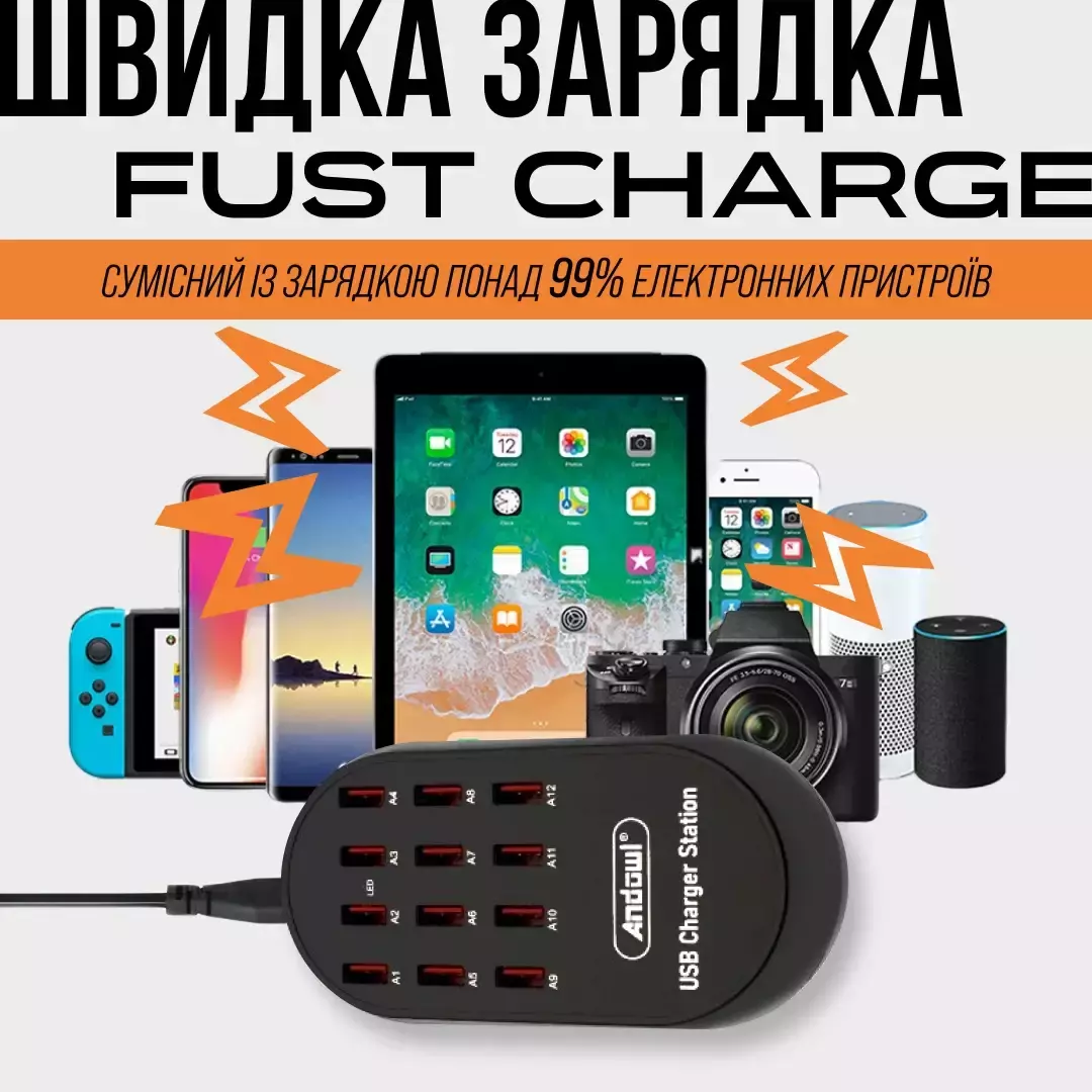 USB-хаб зарядная станция 12 USB портов Andowl Fust