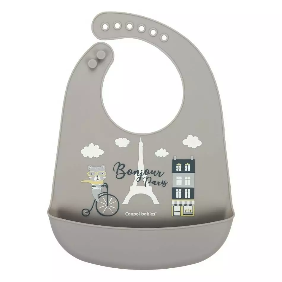 CANPOL Canpol babies Слинявчик силіконовий з кишенькою Bonjour Paris - бежевий 74/027_bei CANPOL