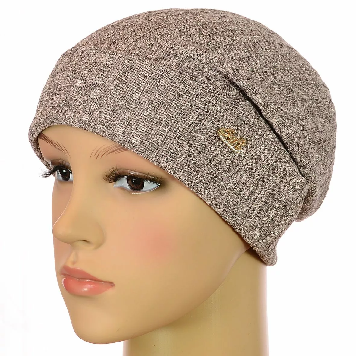 Двухслойная трикотажная шапка с отворотом и закрепом сзади,