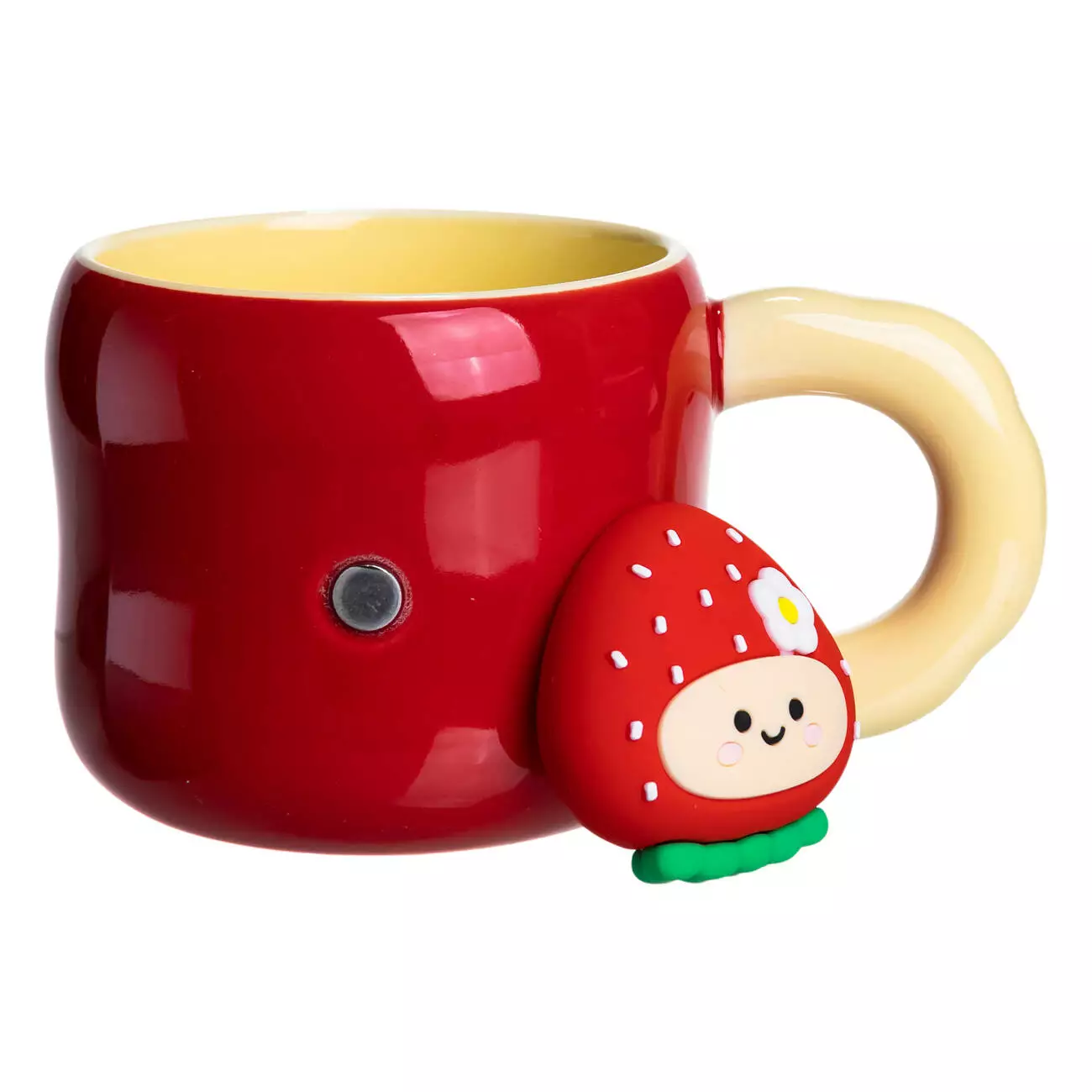 Порцелянова чашка об’ємом 400 мл поєднує естетику й практичність у повсякденному використанні. Вона має знімний декоративний магнітний елемент у формі полунички, який кріпиться до зовнішньої поверхні. Така деталь дозволяє легко змінювати вигляд чашки — від стриманого до більш виразного, залежно від настрою чи події. Бант виконаний у рельєфному стилі, з чітко проробленими об’ємними лініями, що створюють акуратний візуальний акцент.