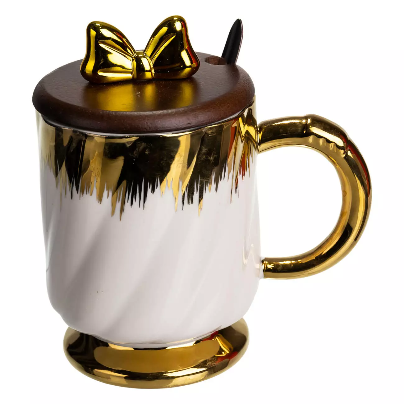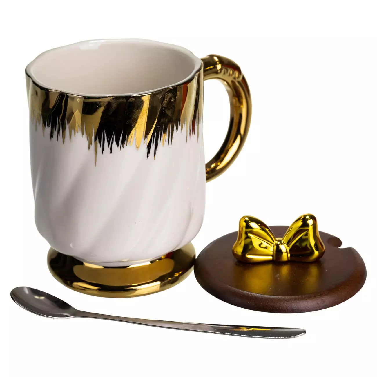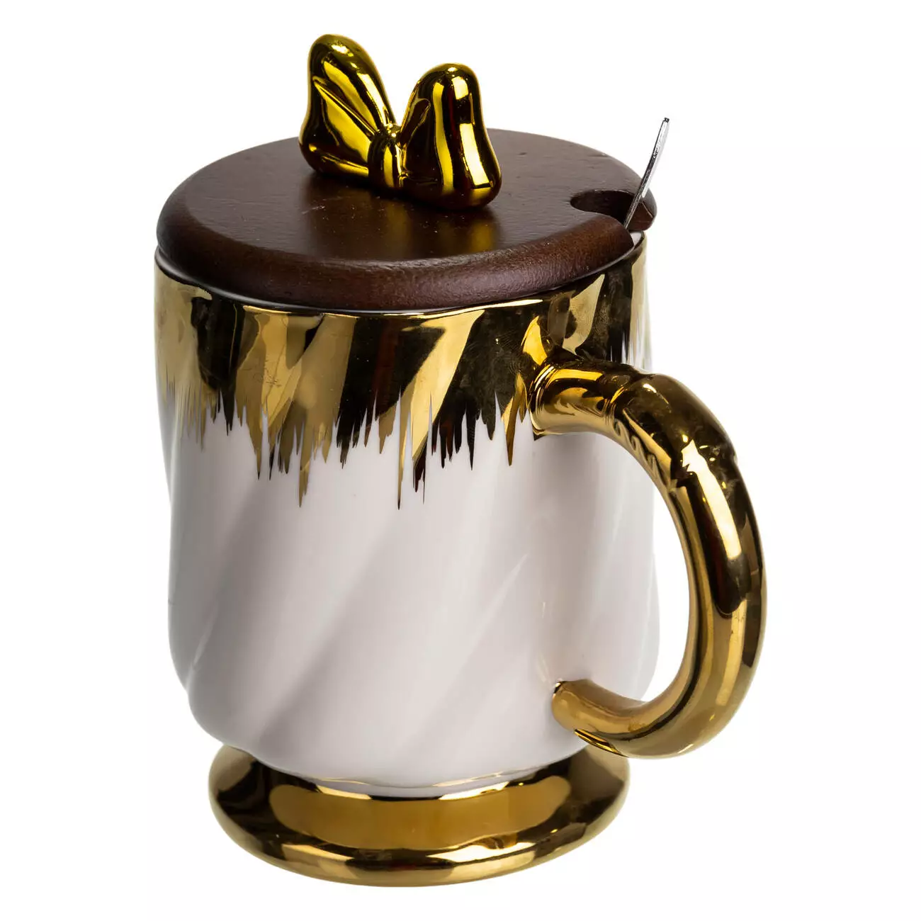 Чашка порцелянова Ribbon 450 мл з кришкою та ложкою, білий