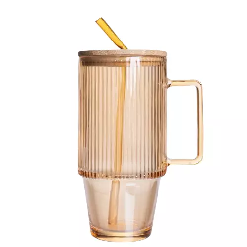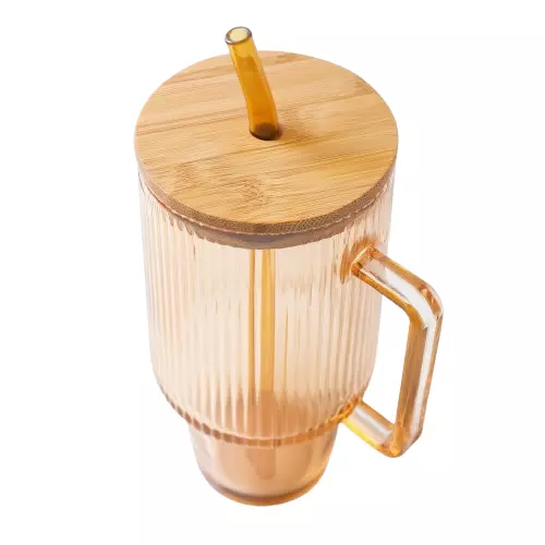 Чашка скляна ICE Tea 750 мл з кришкою та трубочкою, карамель