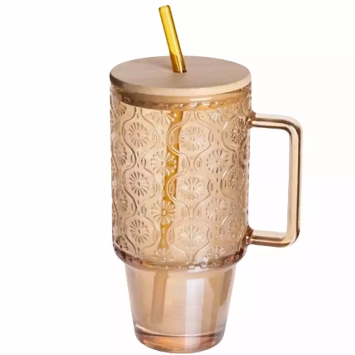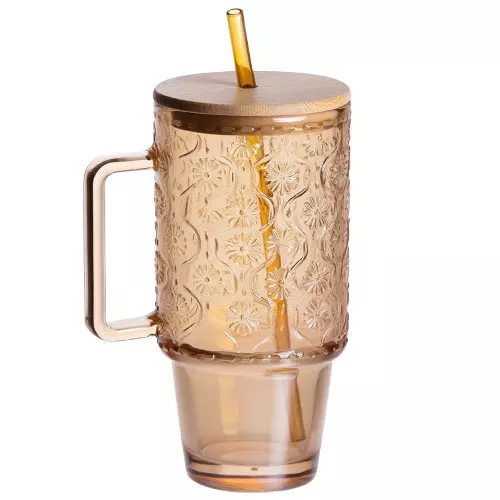 Чашка скляна NIKA 750 мл з кришкою та трубочкою, карамель
