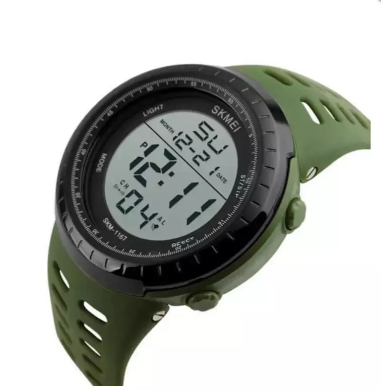 Представляем вам стильные мужские часы SKMEI 1167AG в армейском зеленом цвете.