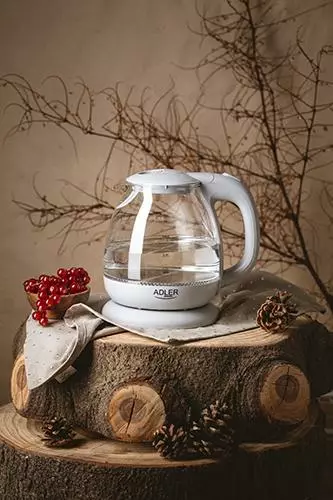 Маленький електричний чайник традиційної форми глечика в сучасному виконанні. Дозволяє ефективно кип'ятити воду для чаю для 3-4 осіб завдяки потужності 1100 Вт і об'ємом 1 л Чайник автоматично вимикається після закипання води. Чайник підсвічується світлодіодними діодами. він оснащений блокуванням, що запобігає вмиканню чайника, що економить електроенергію та забезпечує безпеку користувача. Для зручності він оснащений поворотною основою, плоским дном і нагрівачем з нержавіючої сталі. Це дозволяє закип’ятити 1,0 л води за раз.