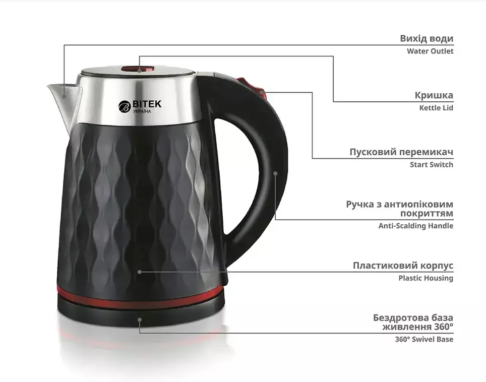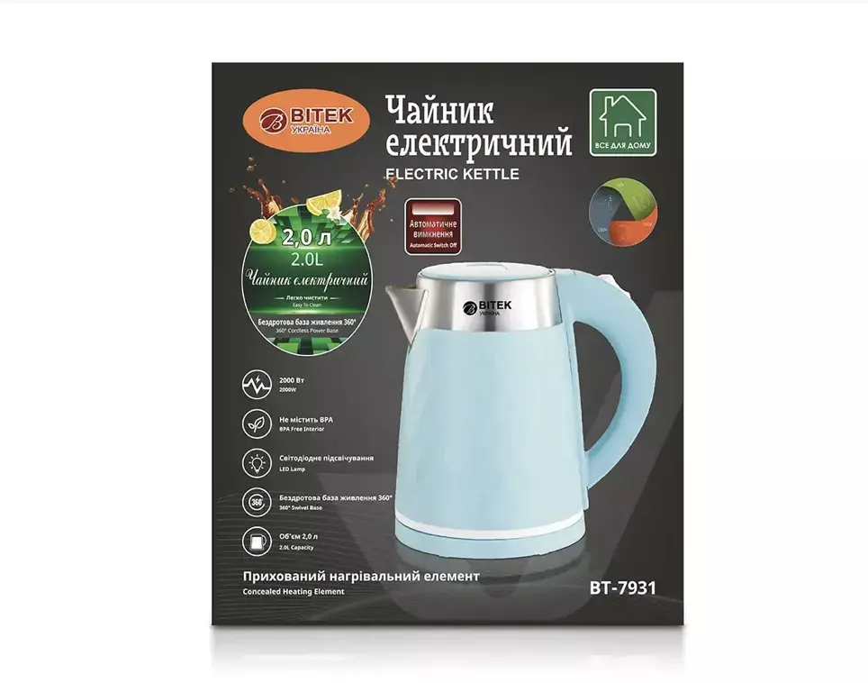 Чайник електричний 2,0л 2000Вт BITEK BT-7931/ 6757 (16)