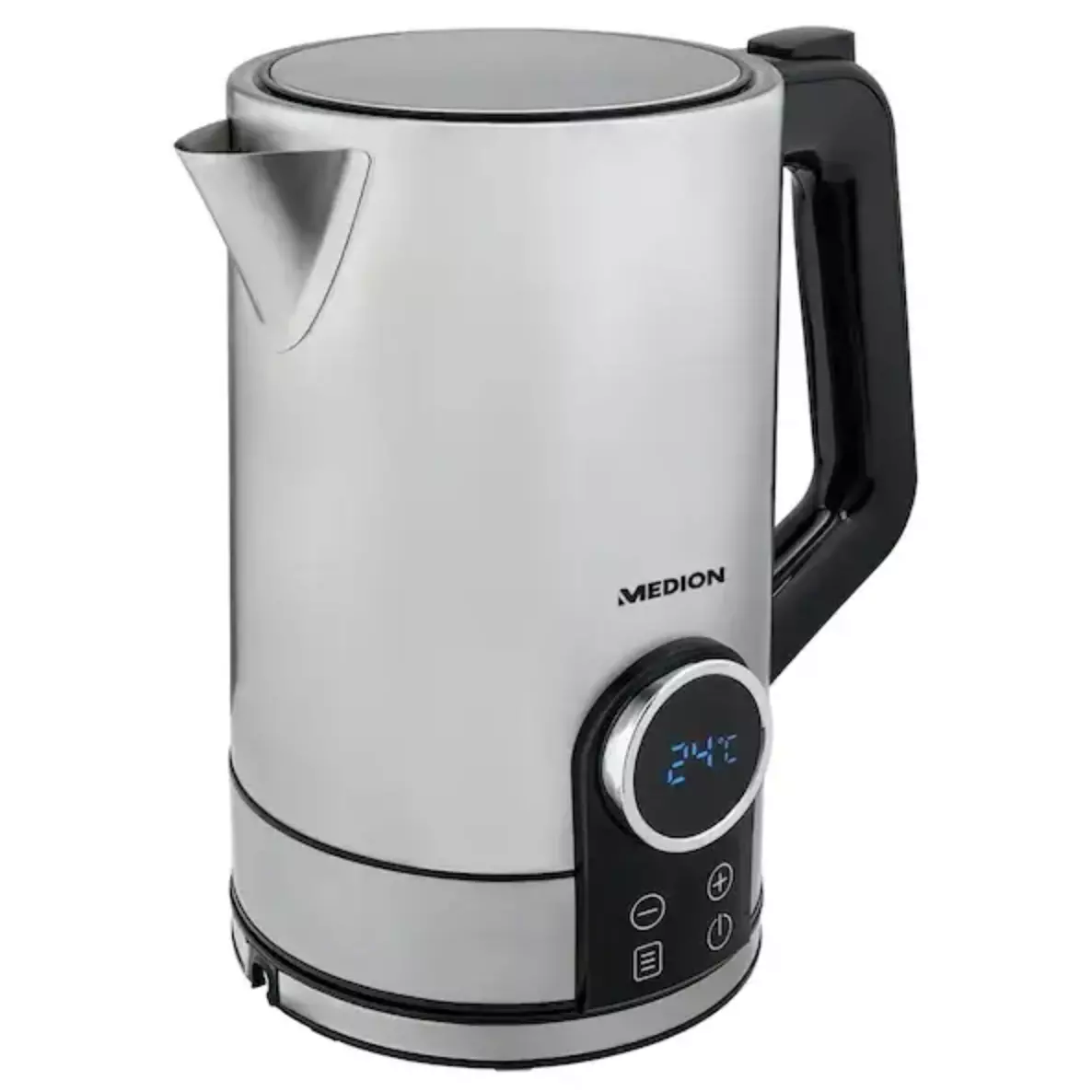 на кухне.Чайник MEDION с цифровым управлением объемом 1,7 литра и
