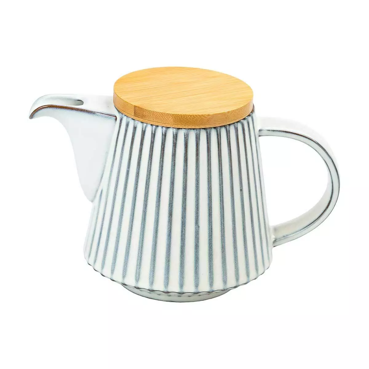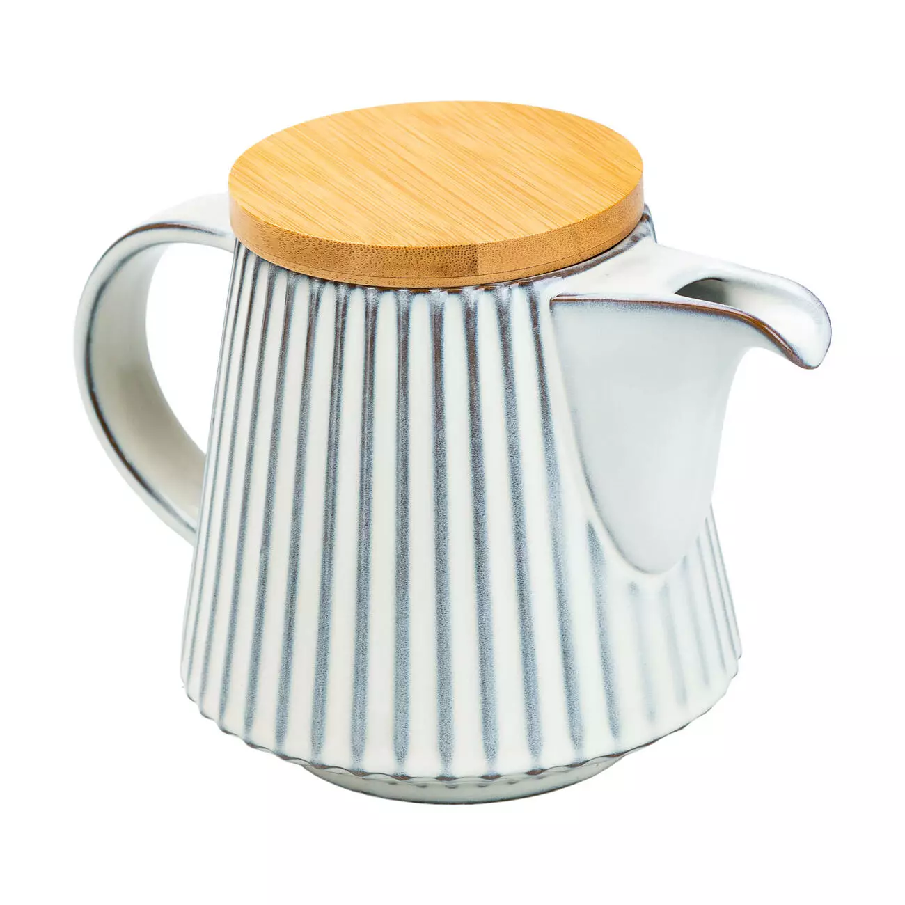 Чайник заварювальний порцеляновий з бамбуковою кришкою 850 мл, білий